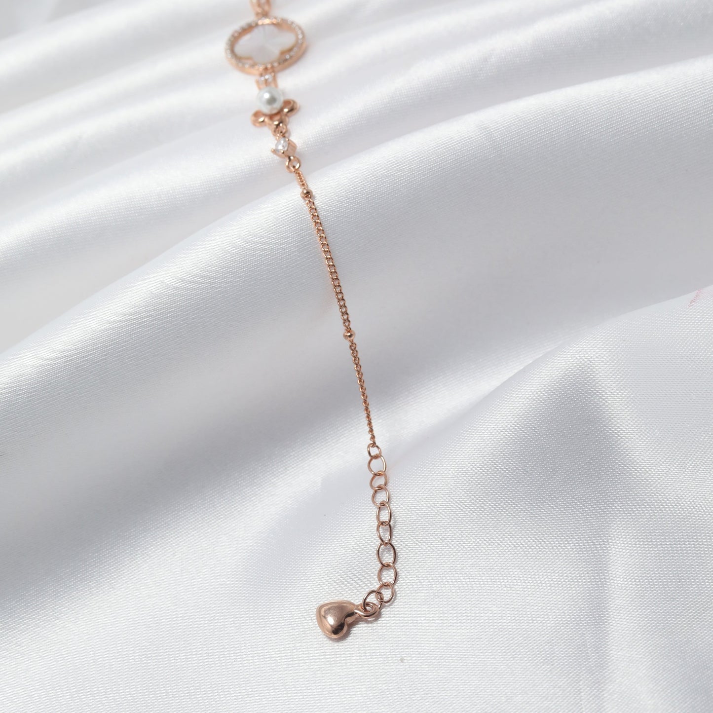 🌿 Design: Mother of Pearl Clover Charm with Pearl Accents