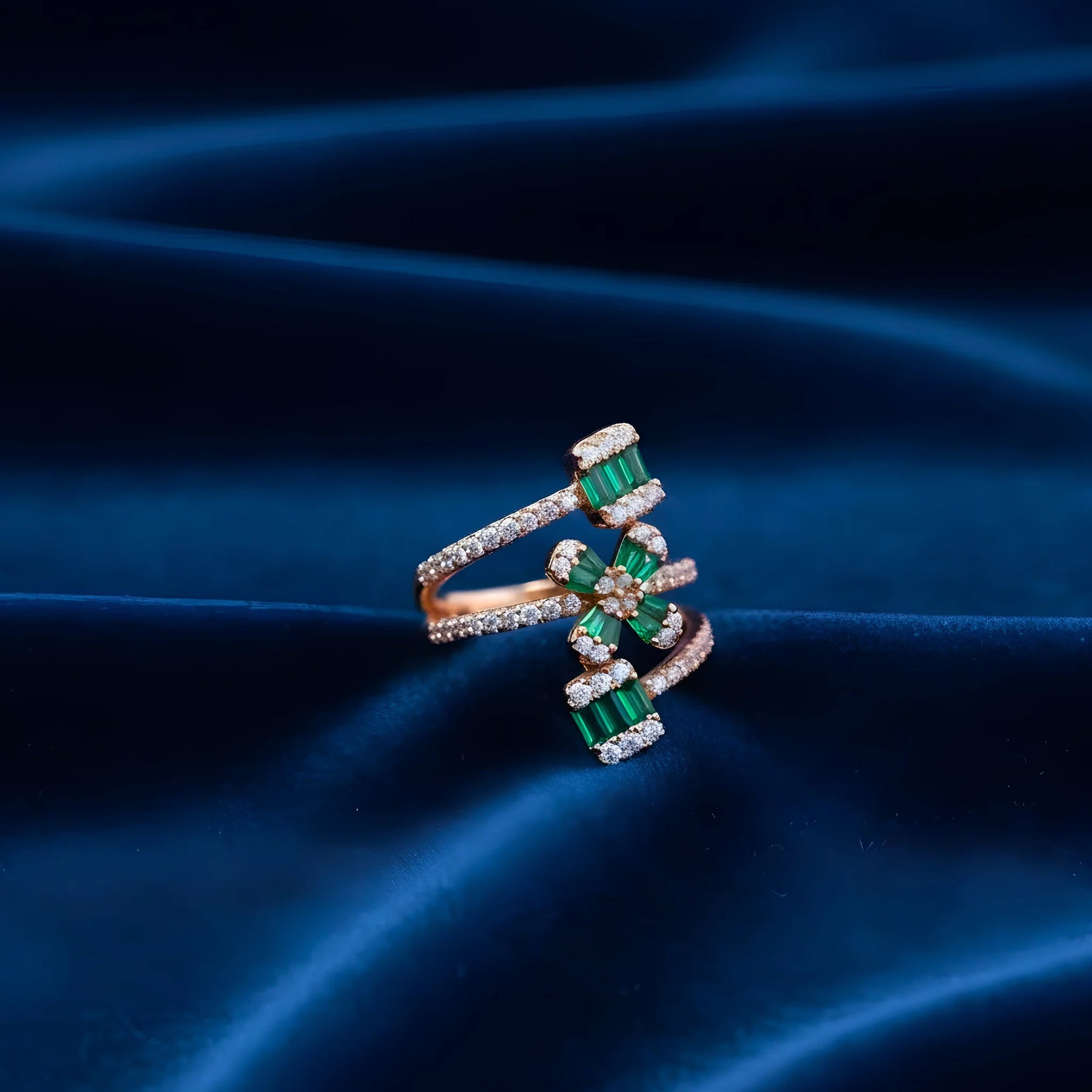 "desc": "Inspired by the enchanting beauty of nature, the Aranya ring is a celebration of delicate floral elegance. This intricately crafted piece features dual-tone ...",