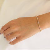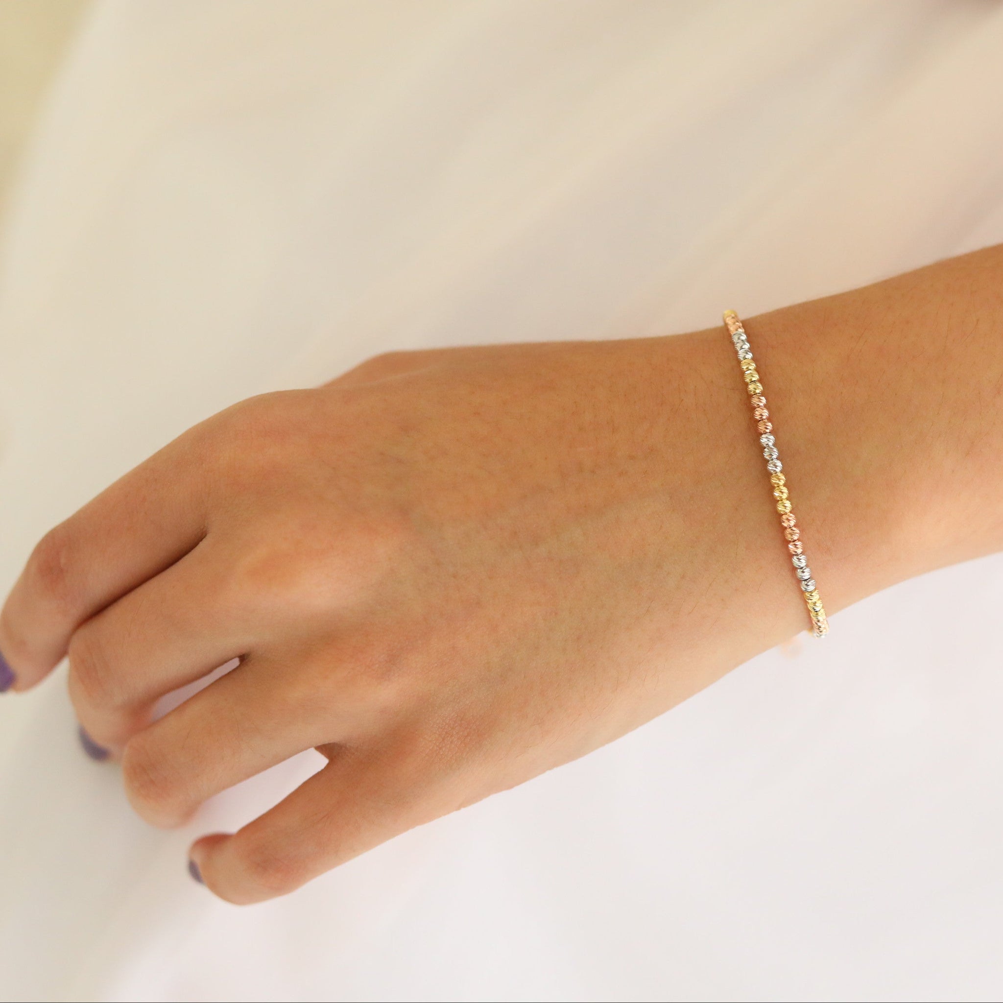 Crafted with precision, each shimmering bead catches the light beautifully, making it the perfect bracelet to wear solo or layered. The secure lobster clasp and adjustable links ensure a flawless fit for every wrist.