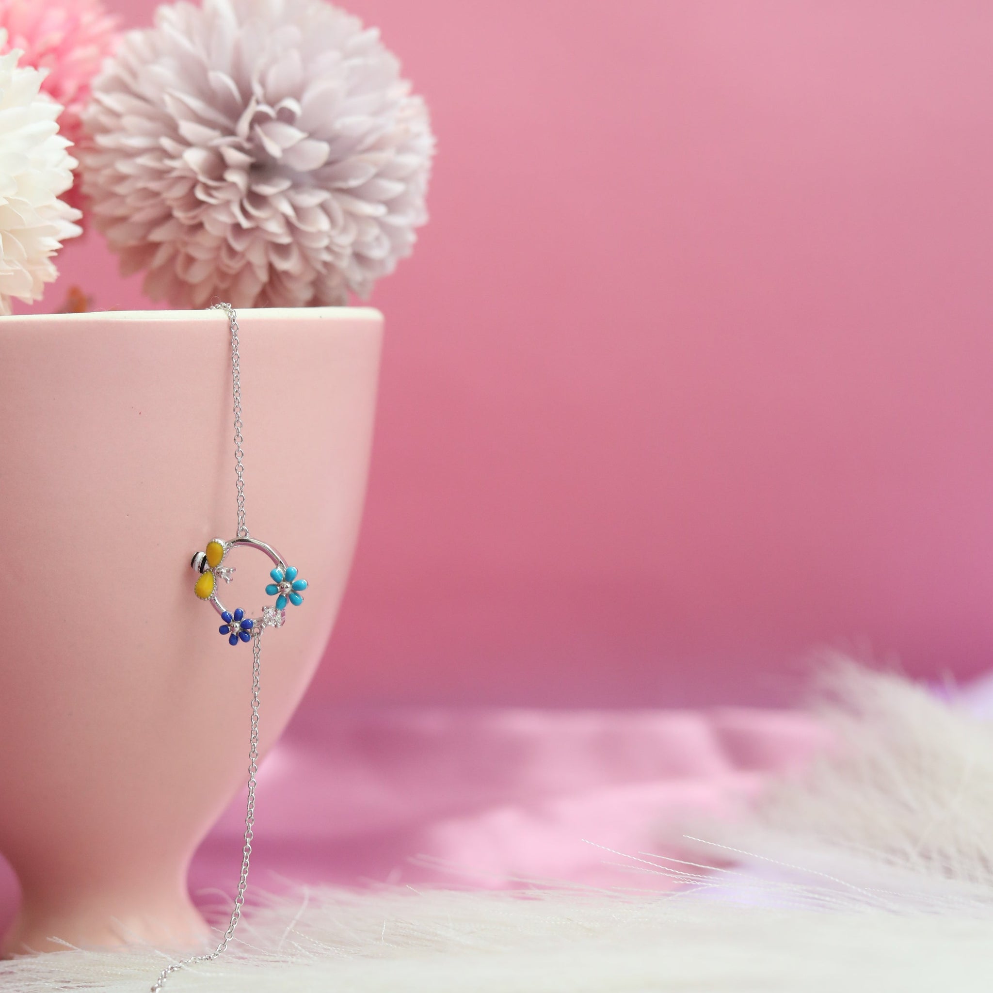 Delicate, dreamy, and full of charm, this enamel floral bracelet is a tribute to nature’s beauty....