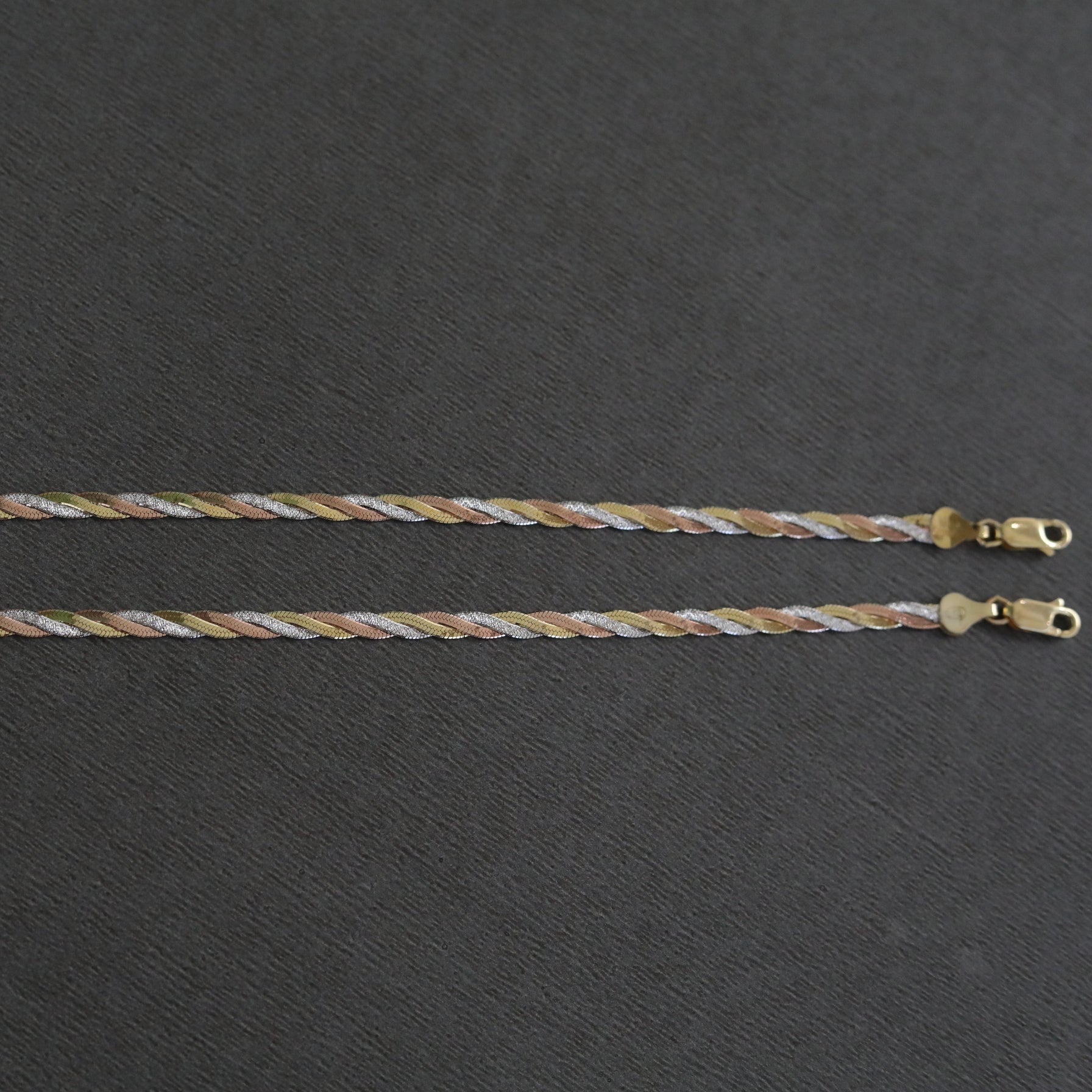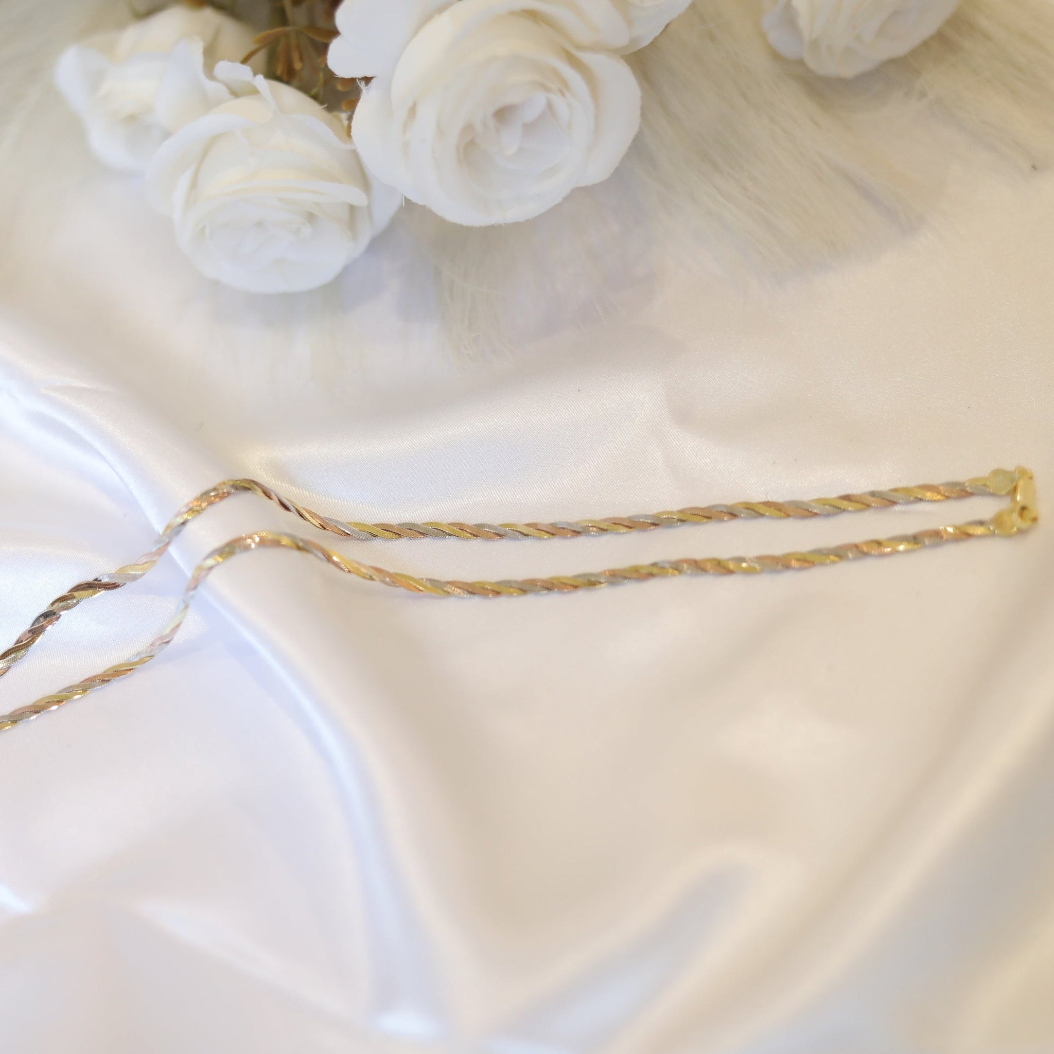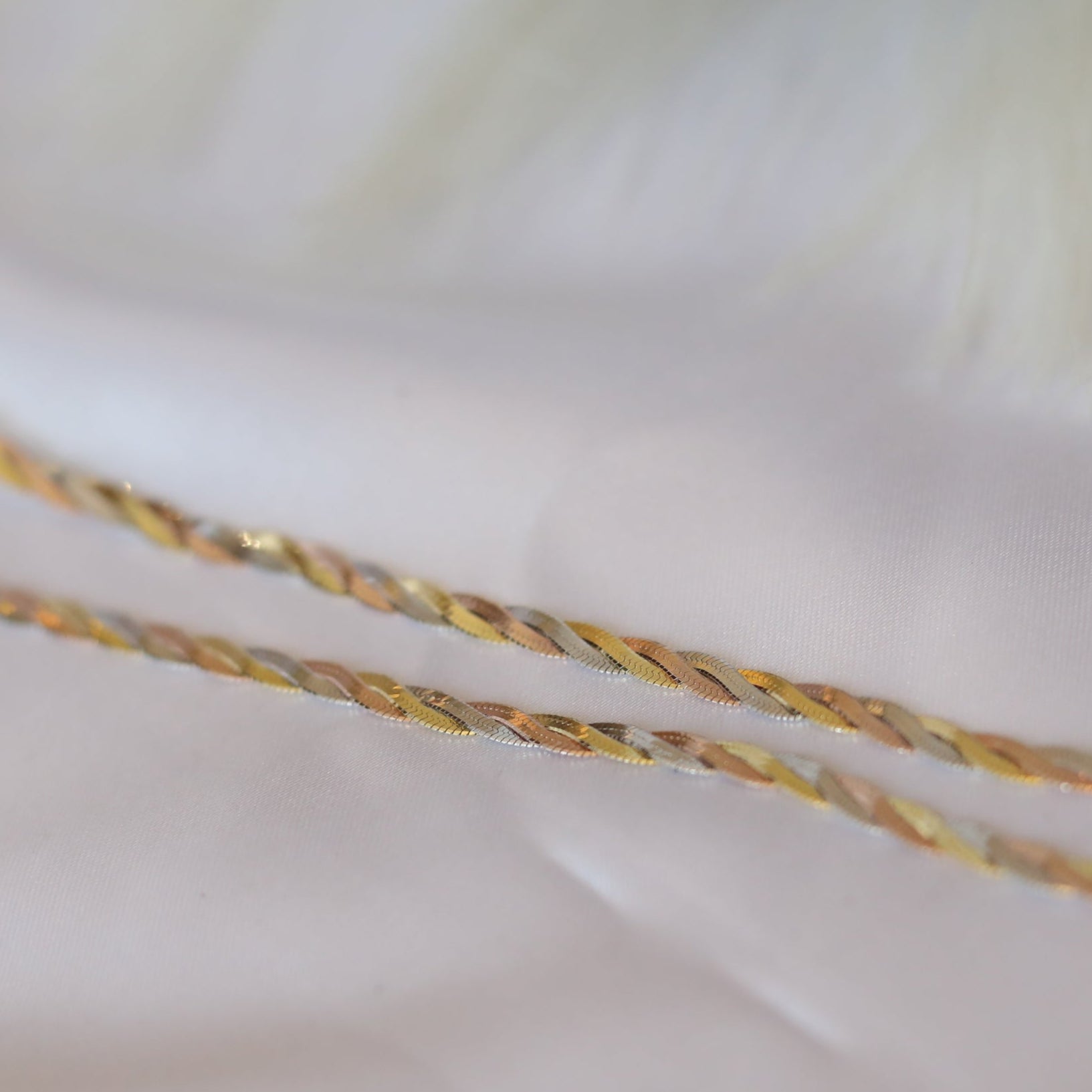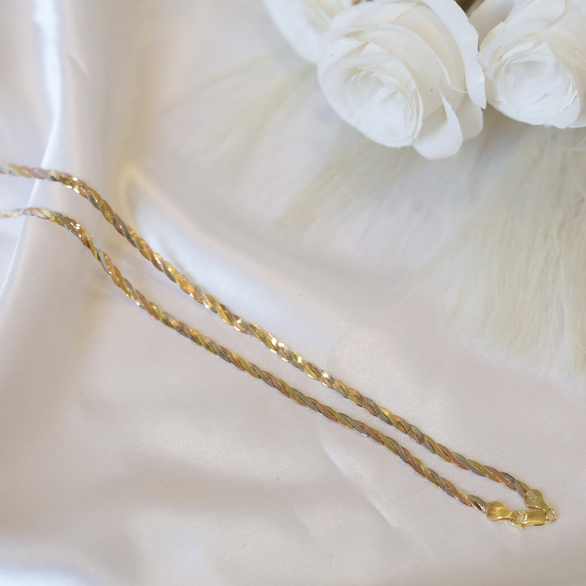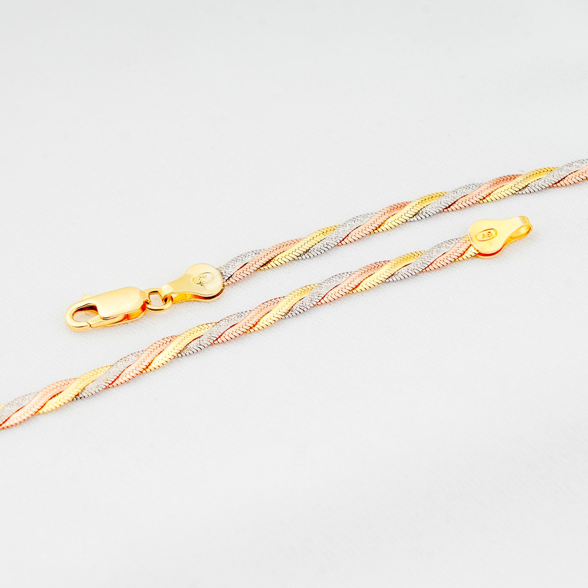 The Trenza Anklet beautifully intertwines elegance and craftsmanship in a unique plaided design. Made from 92.5 sterling silver, this anklet showcases a captivating blend of silver, gold, and rose gold tones, symbolizing unity, strength, and harmony.
