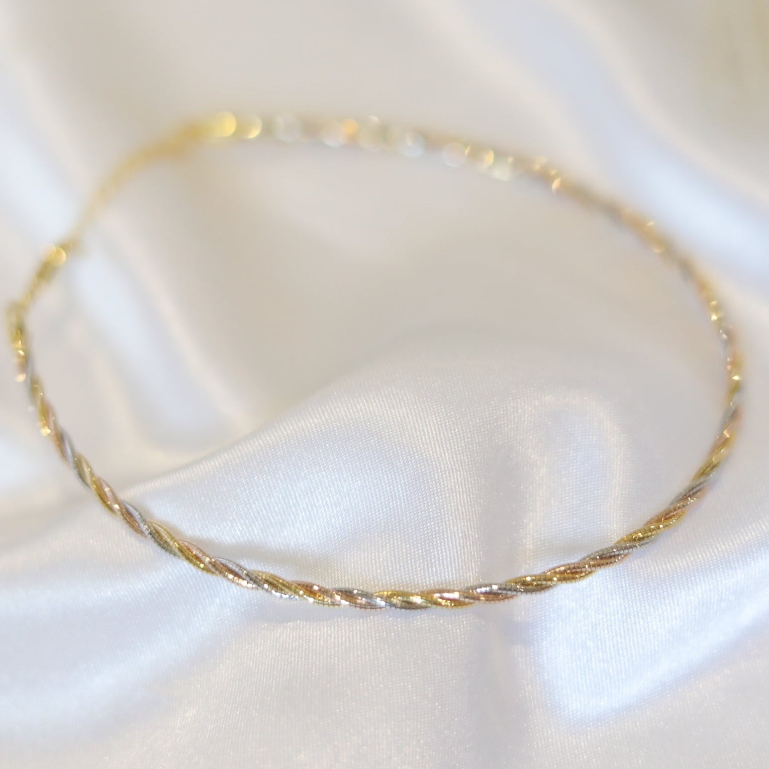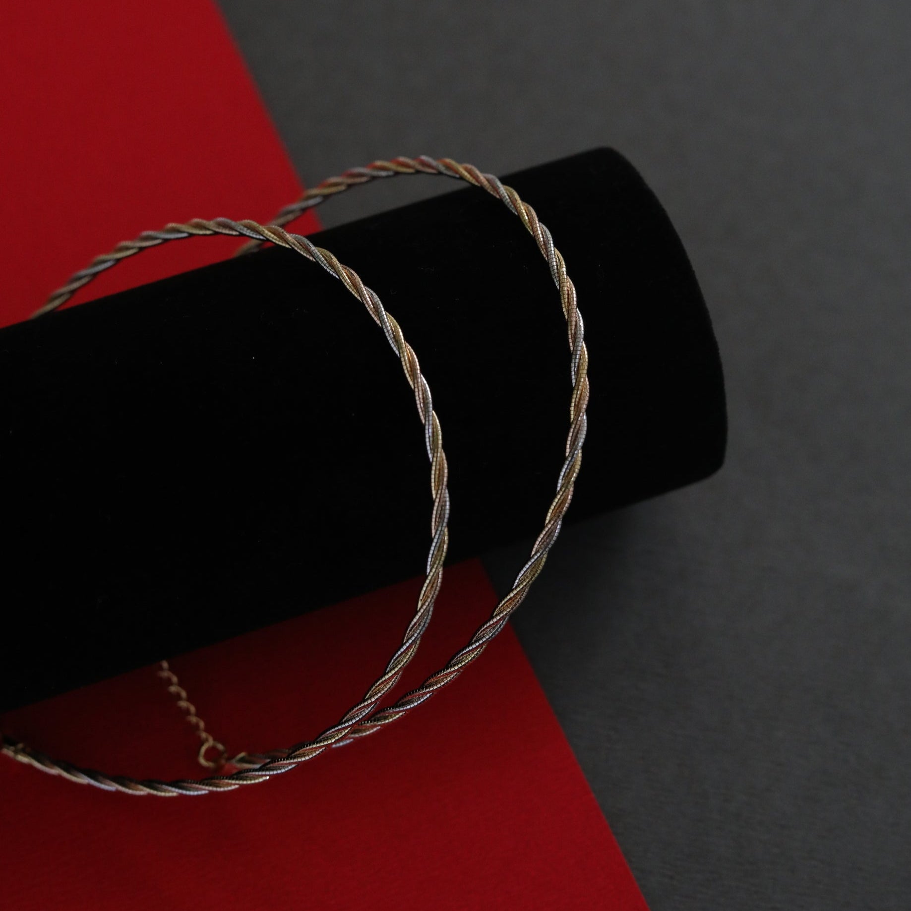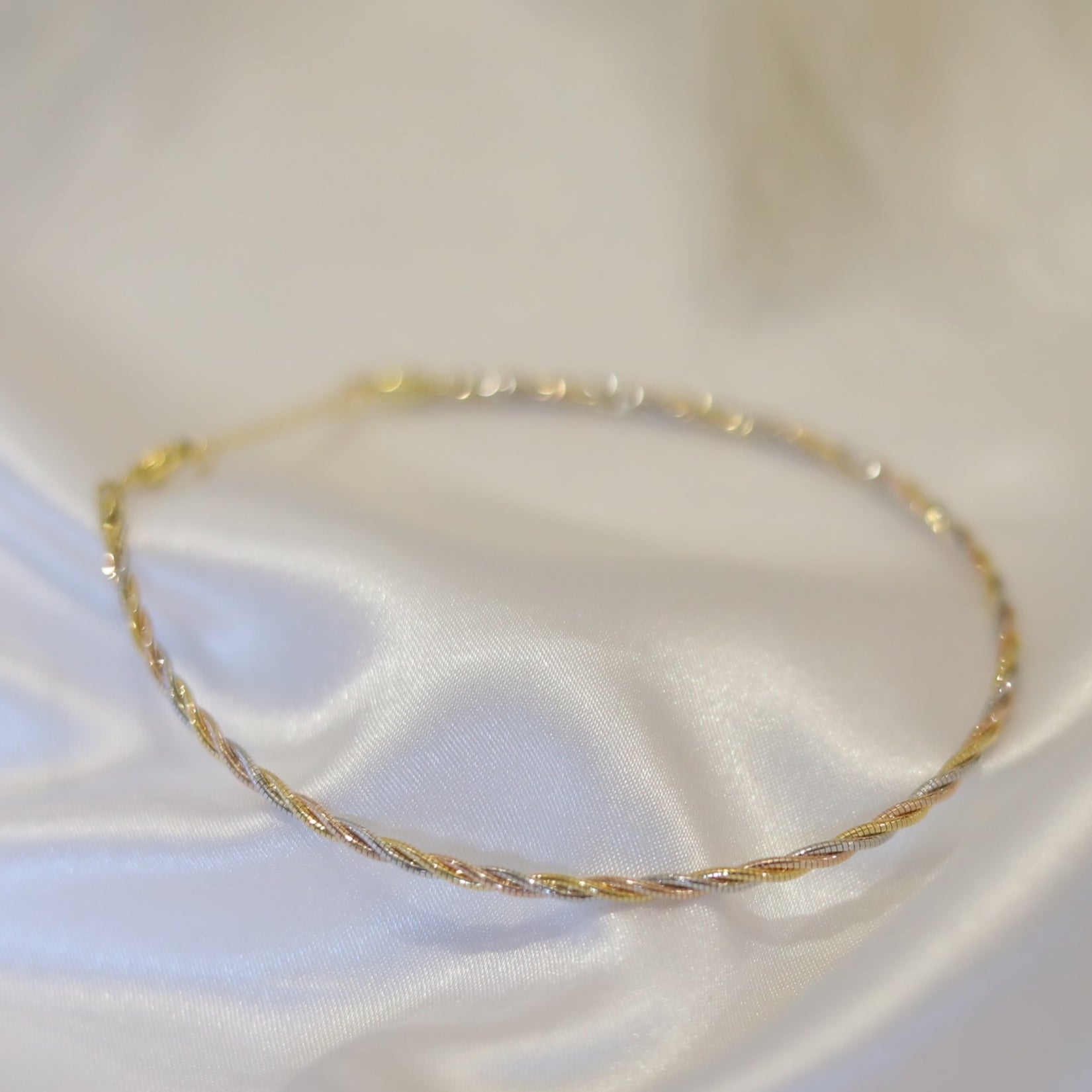 The Vanya Anklet is a mesmerizing blend of delicacy and strength, crafted from 92.5 sterling silver and adorned with a stunning three-tone twisted design. With strands of silver, gold, and rose gold intricately woven together, this anklet symbolizes balance, unity, and sophistication.