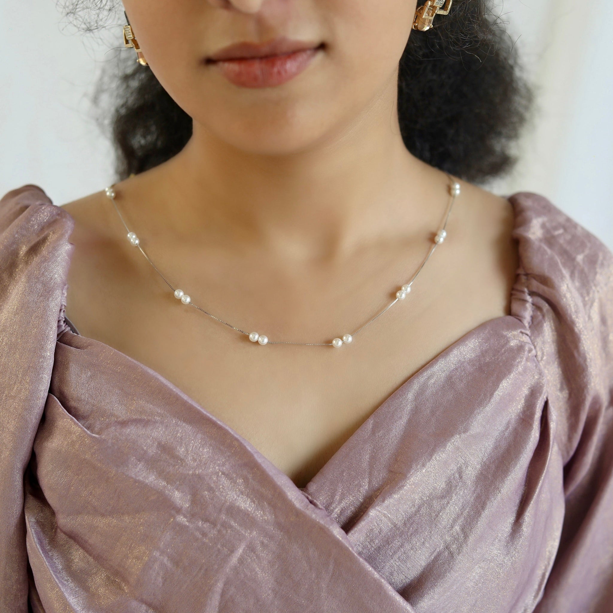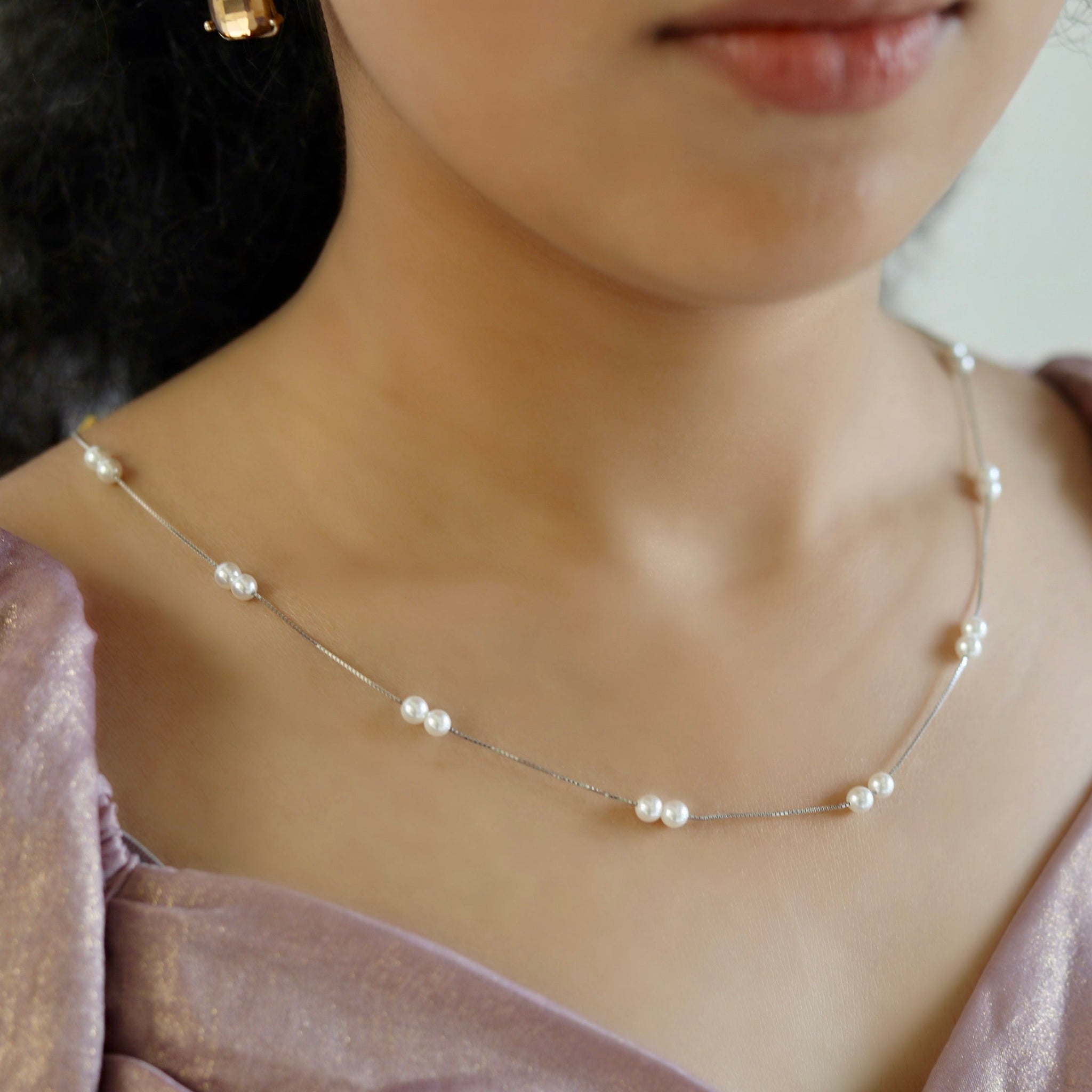🔹 Design: A minimal yet exquisite symphony of lustrous pearls, artistically spaced for a floating effect.