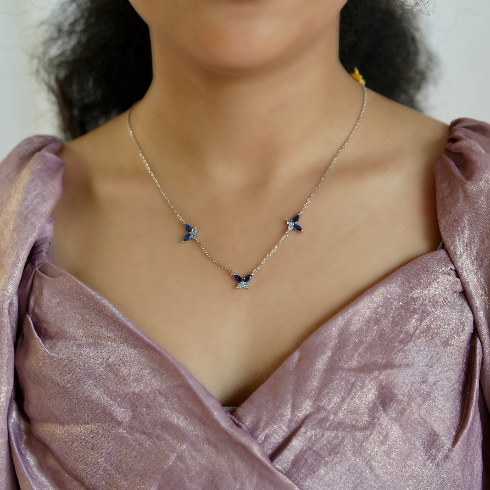 Add a touch of sass to your style with Sass-phire, a stunning silver necklace featuring delicately crafted sapphire-hued stones. Designed for the bold and the beautiful, this piece blends sophistication with a playful edge—because who says luxury can’t have a little fun?