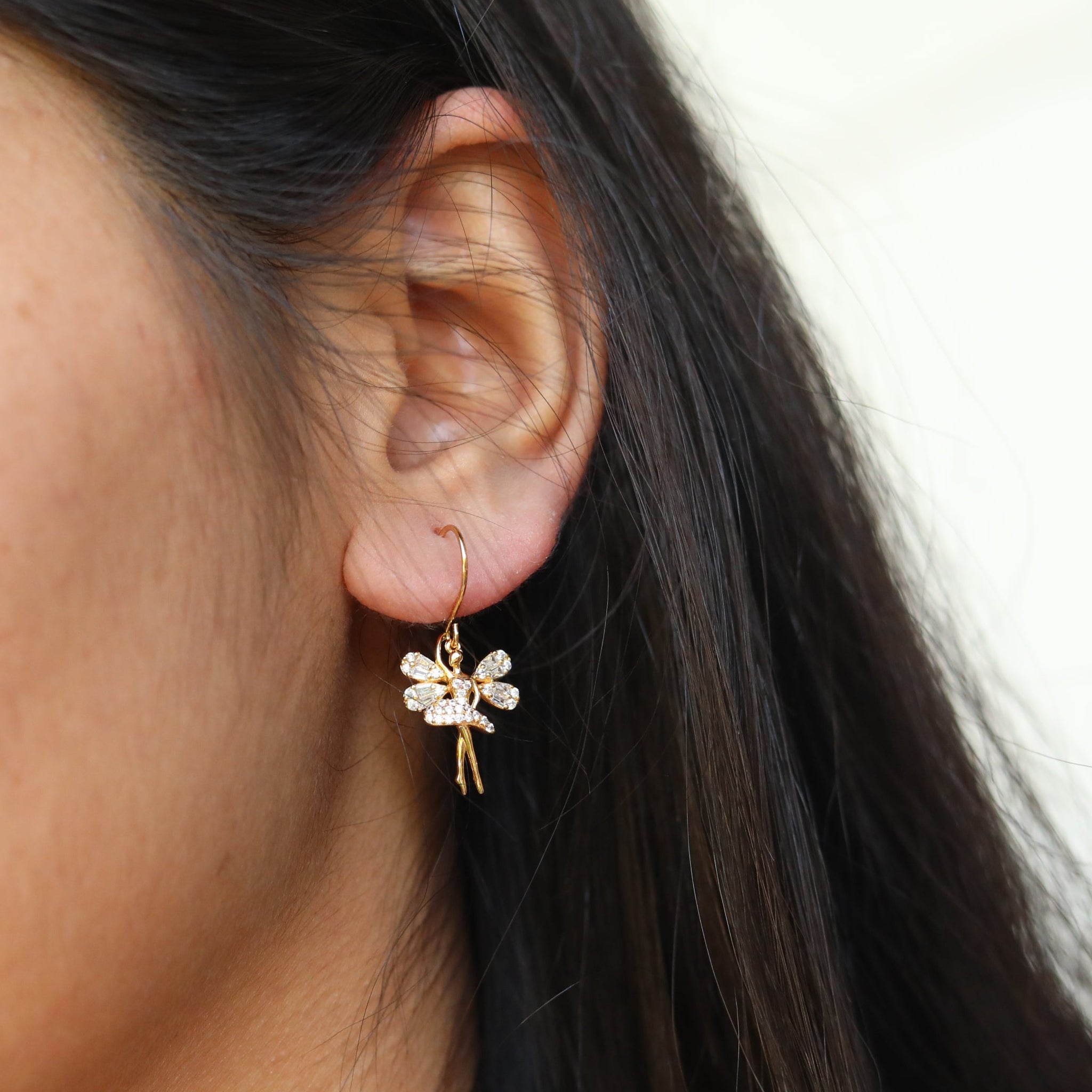 Step into a world of magic and elegance with the Dancing Fairy Earrings—a whimsical piece designed for those who believe in a little sparkle and fantasy. Featuring a delicate dancing fairy motif, these earrings are adorned with shimmering crystals that catch the light beautifully, making them appear as if they’re fluttering in motion.