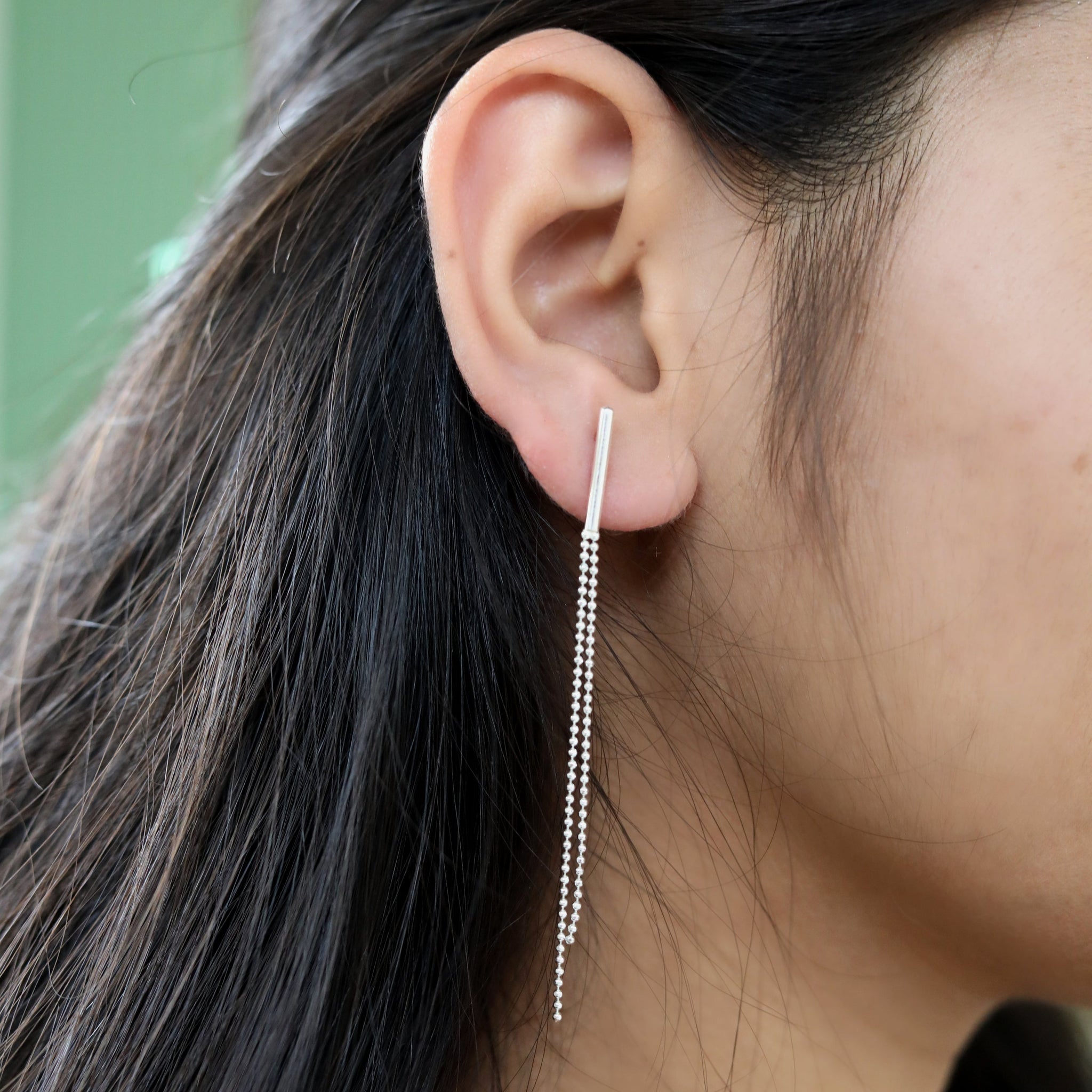 Sleek, modern, and effortlessly sophisticated, the Linea Drop Earrings redefine minimalism with a touch of movement. Featuring a polished silver bar that seamlessly transitions into delicate cascading chains, these earrings create a refined yet striking look.