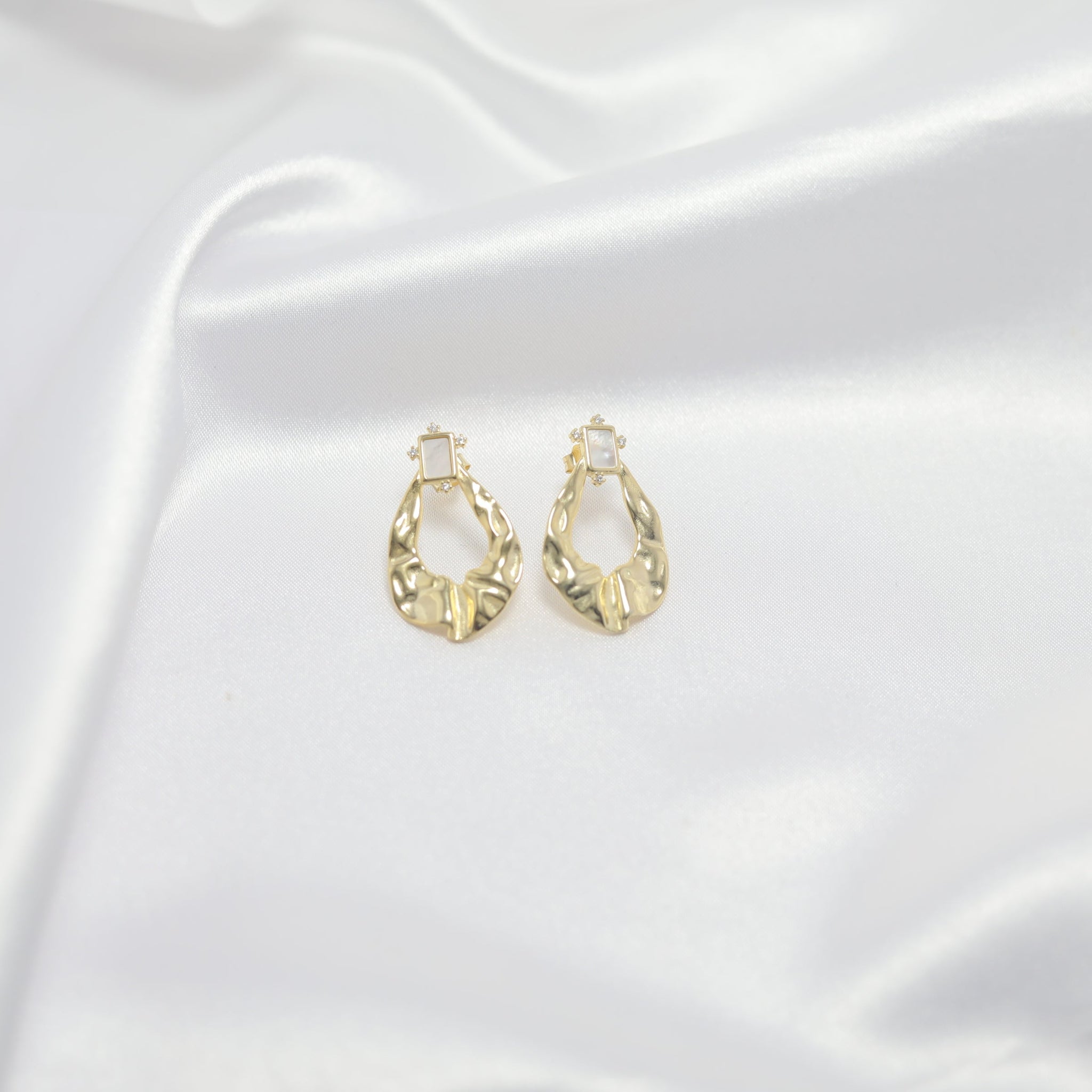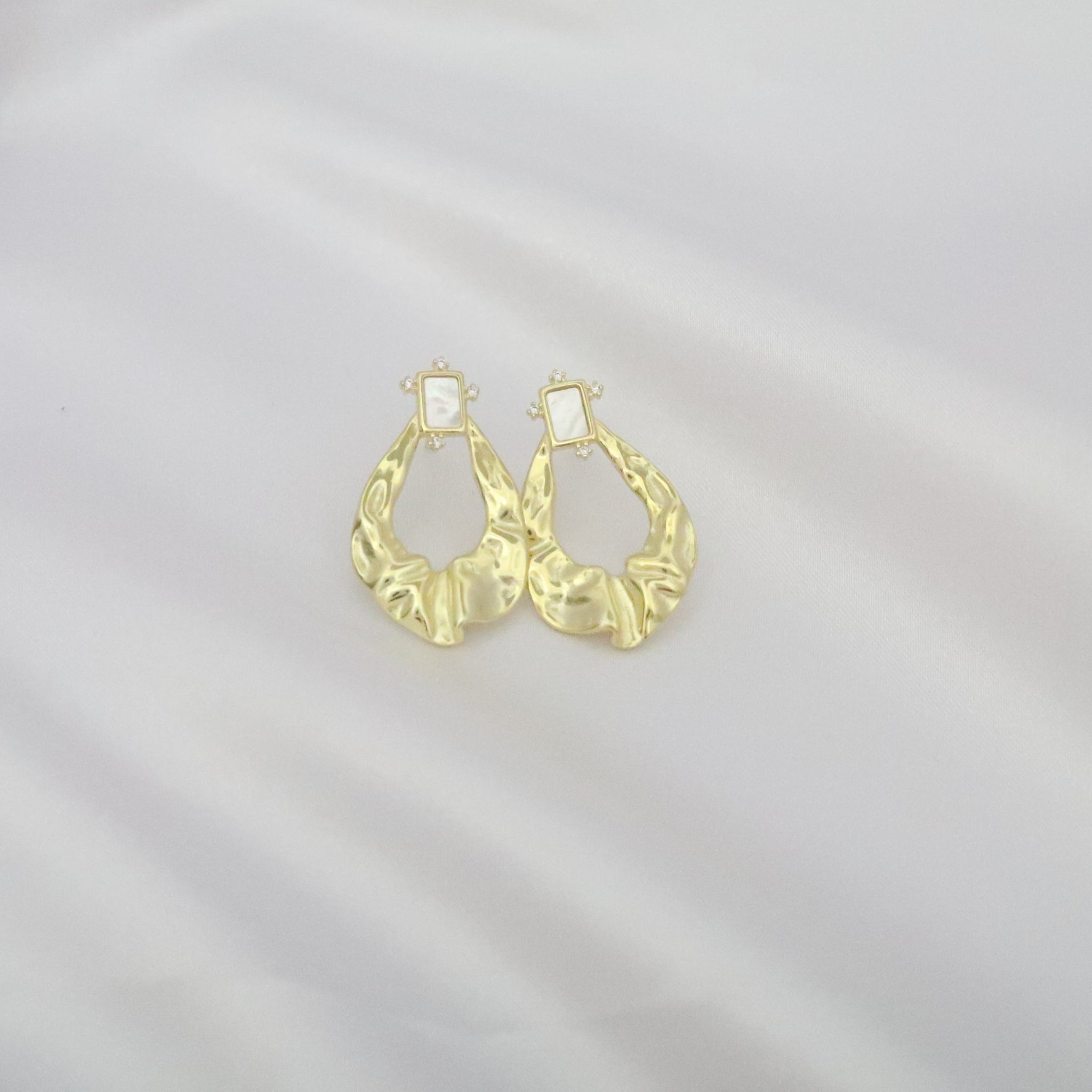 Make a bold statement with these elegant textured gold drop earrings, designed for those who love a mix of modern style and vintage charm. Featuring a sculpted, organic gold drop shape, these earrings exude an artistic, handcrafted feel. The top is adorned with a delicate gemstone accent, adding a touch of sophistication and sparkle.