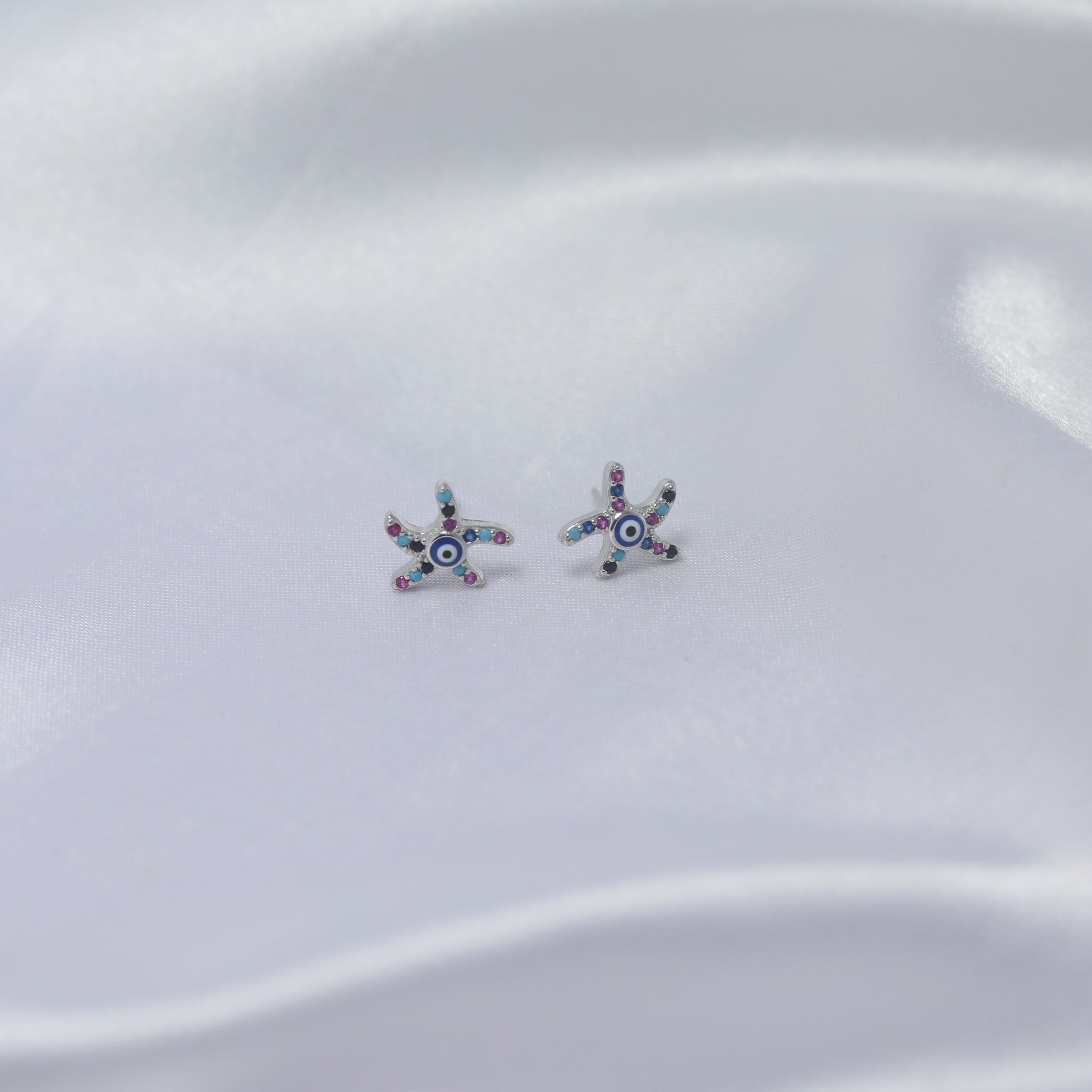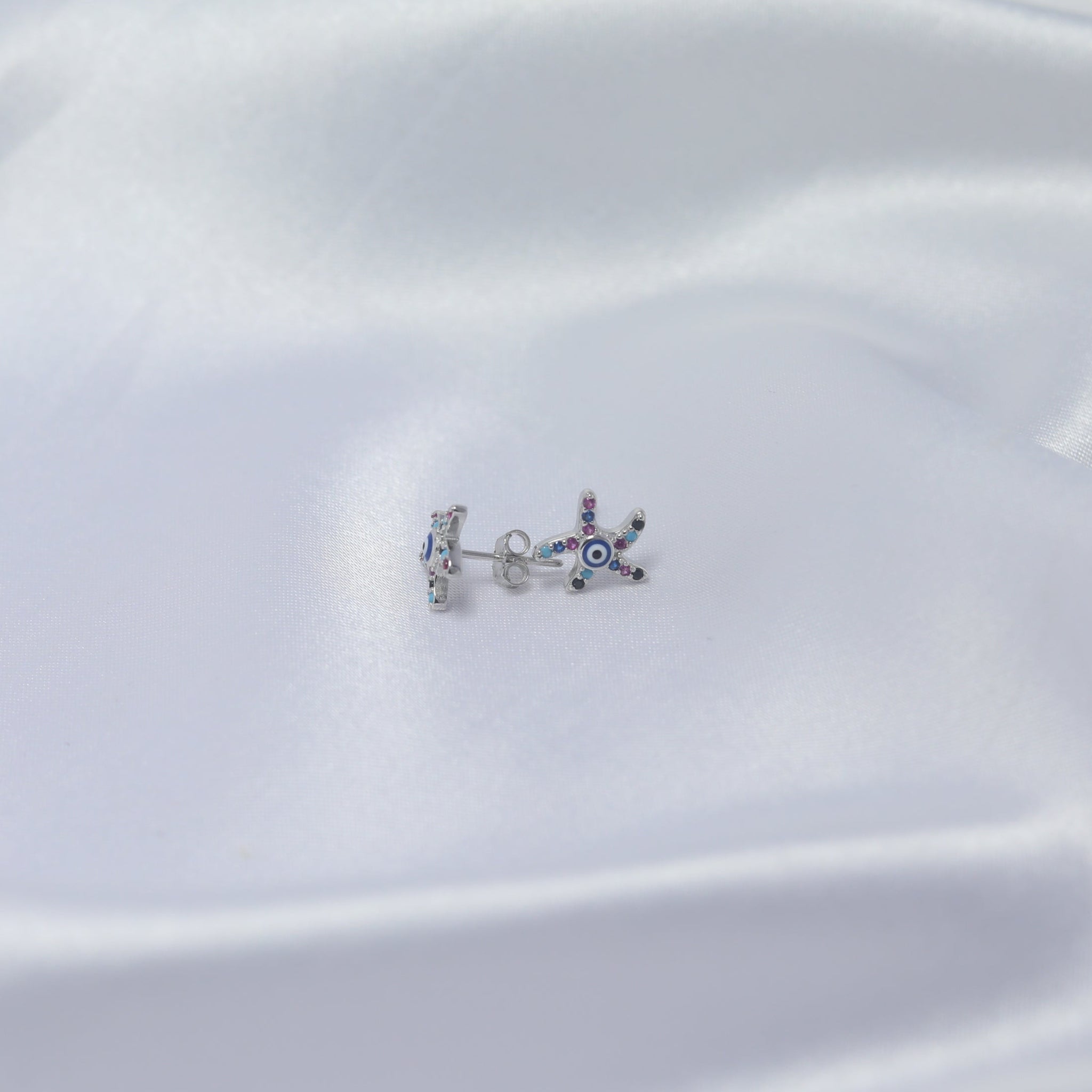 Enhance your jewelry collection with these Celestial Evil Eye Starburst Stud Earrings, a perfect blend of elegance and spiritual symbolism.