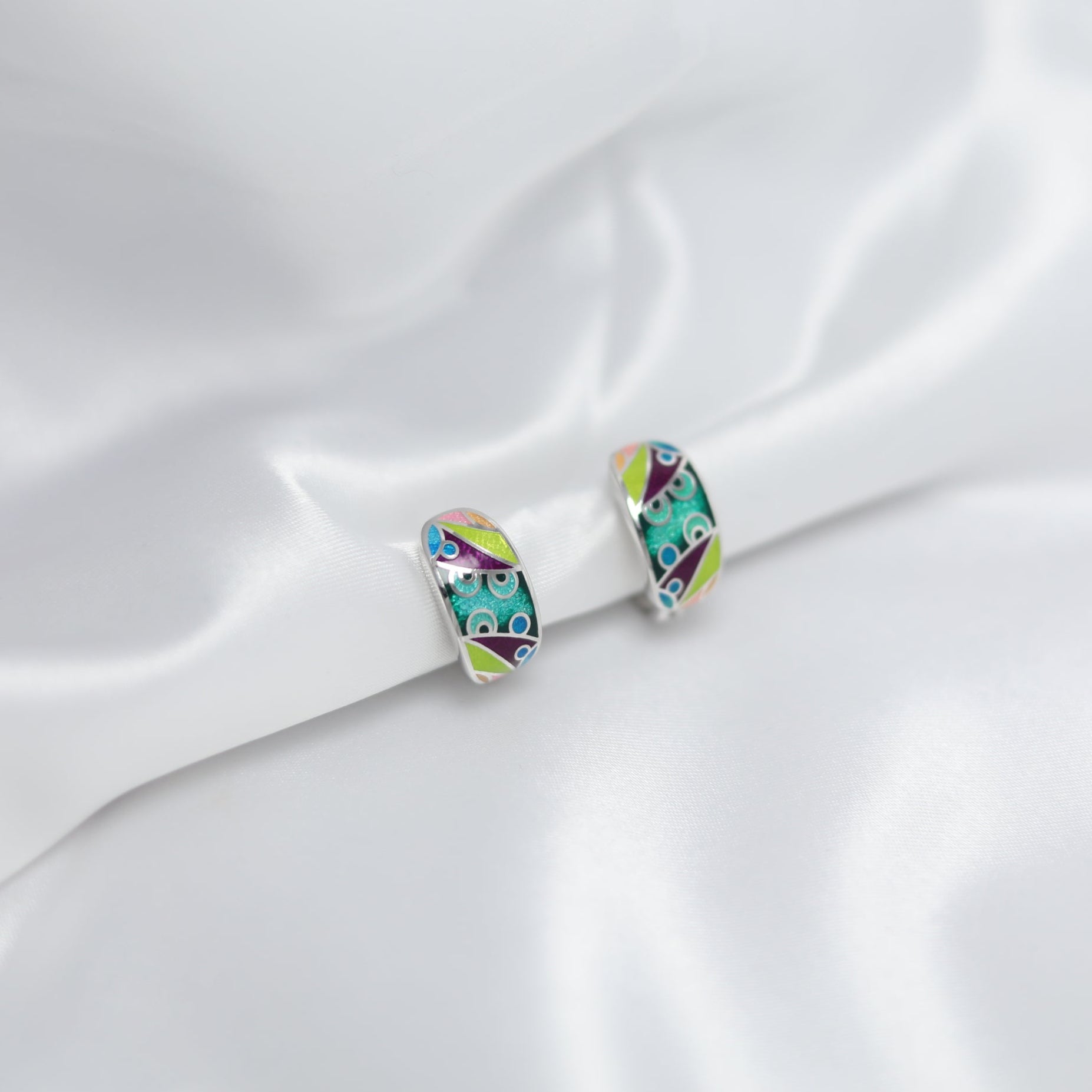 A perfect harmony of vibrant enamel artistry and premium silver, the Celeste Hoops are designed to add a playful yet elegant touch to your look. Inspired by the cosmic dance of colors in the sky, these hoops are a true statement of creativity and charm.