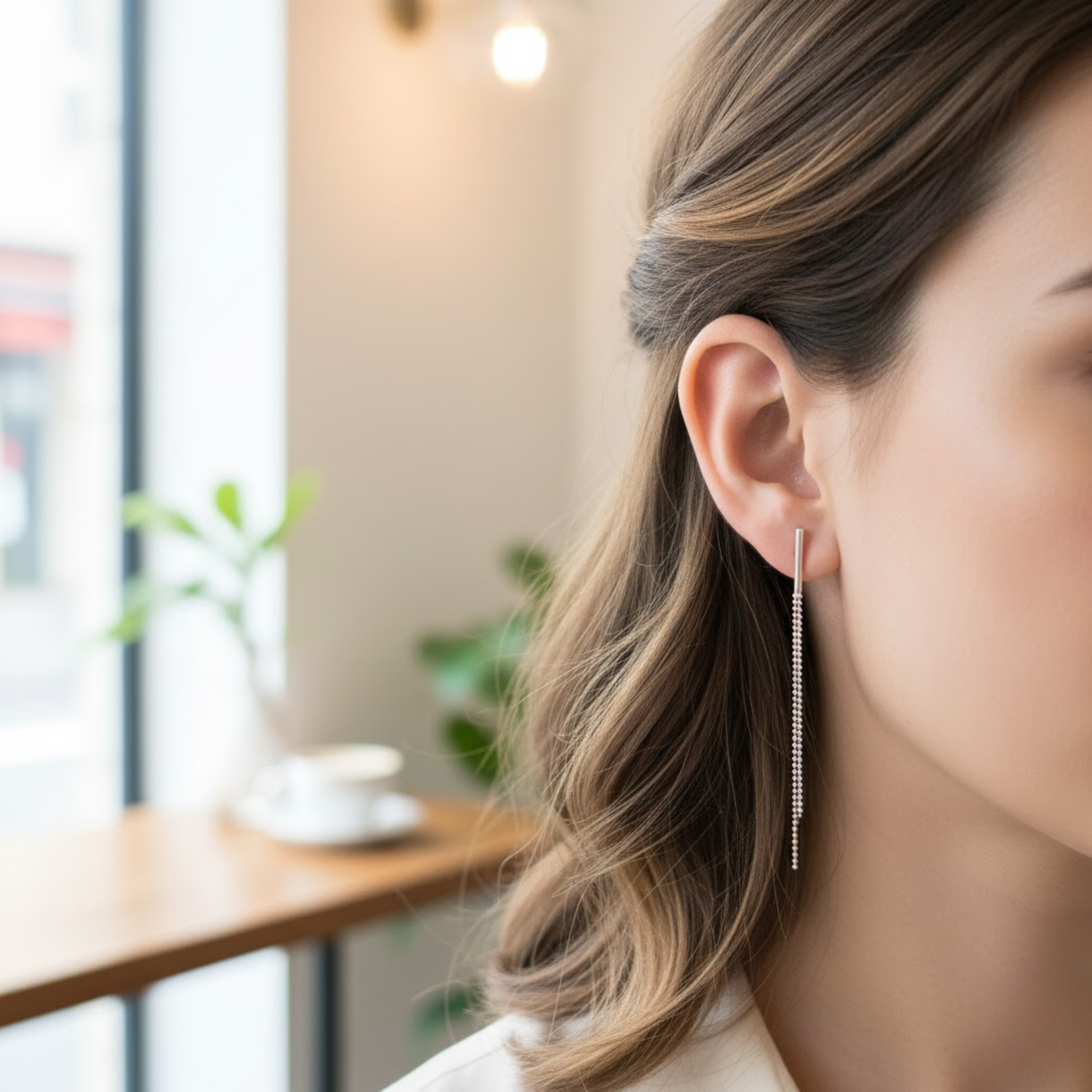 Sleek, modern, and effortlessly sophisticated, the Linea Drop Earrings redefine minimalism with a touch of movement. Featuring a polished silver bar that seamlessly transitions into delicate cascading chains, these earrings create a refined yet striking look.