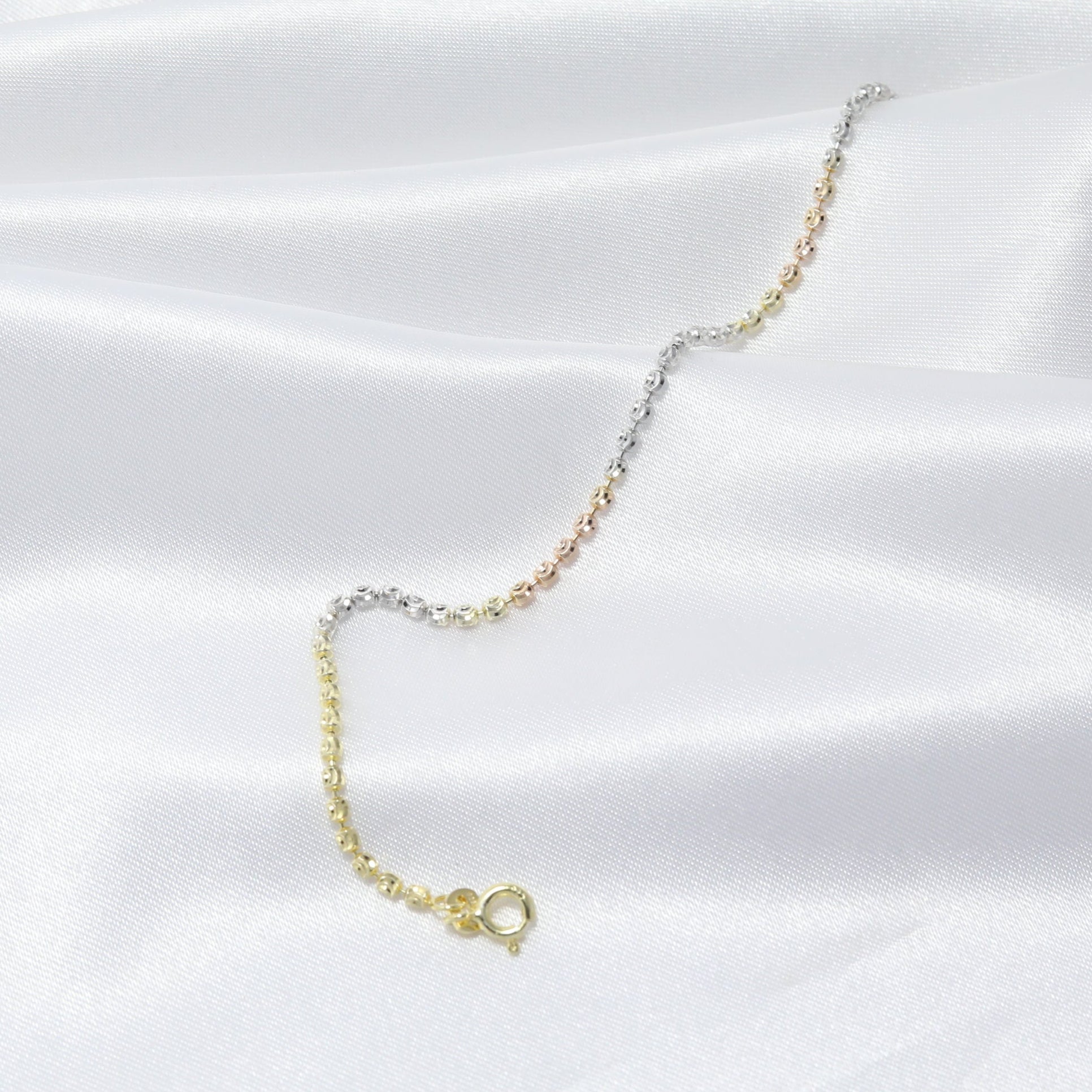 A minimalist masterpiece with a modern twist—meet our Trinity Glow Bracelet, designed for those who adore effortless elegance. This radiant piece features a trio-tone beaded chain blending gold, silver, and rose gold for a look that’s chic, versatile, and oh-so-stylish.