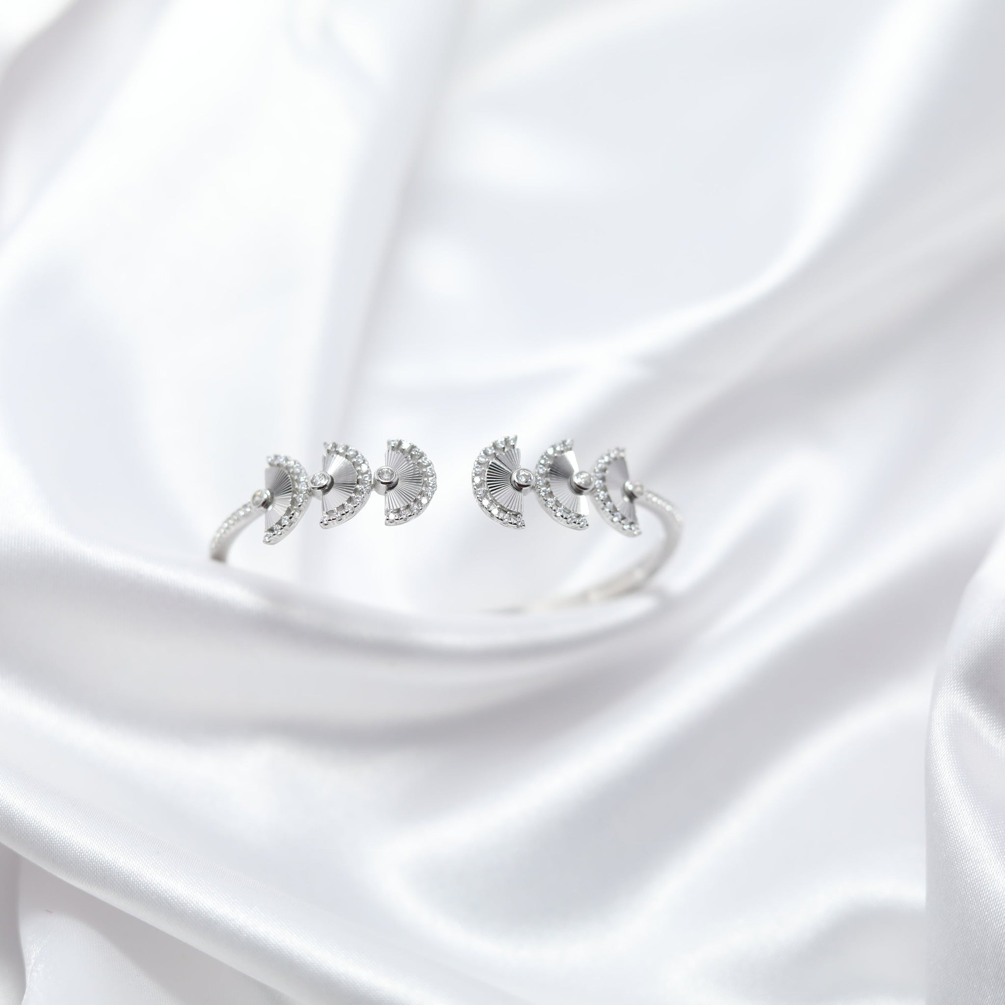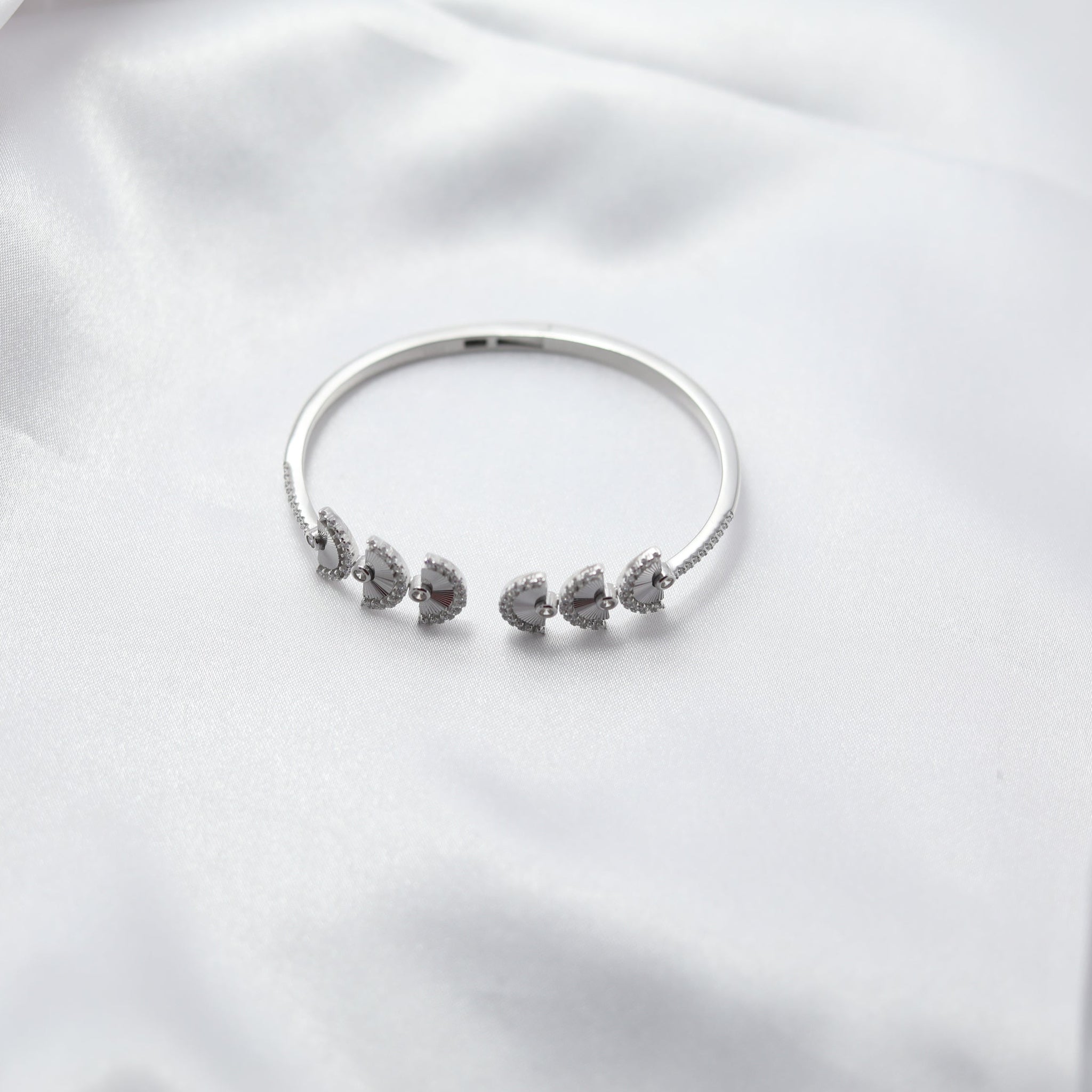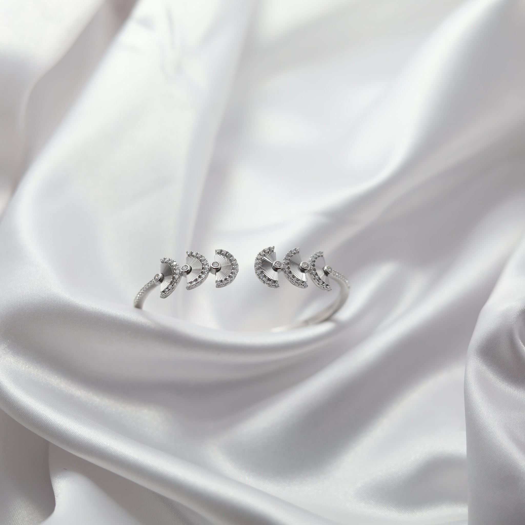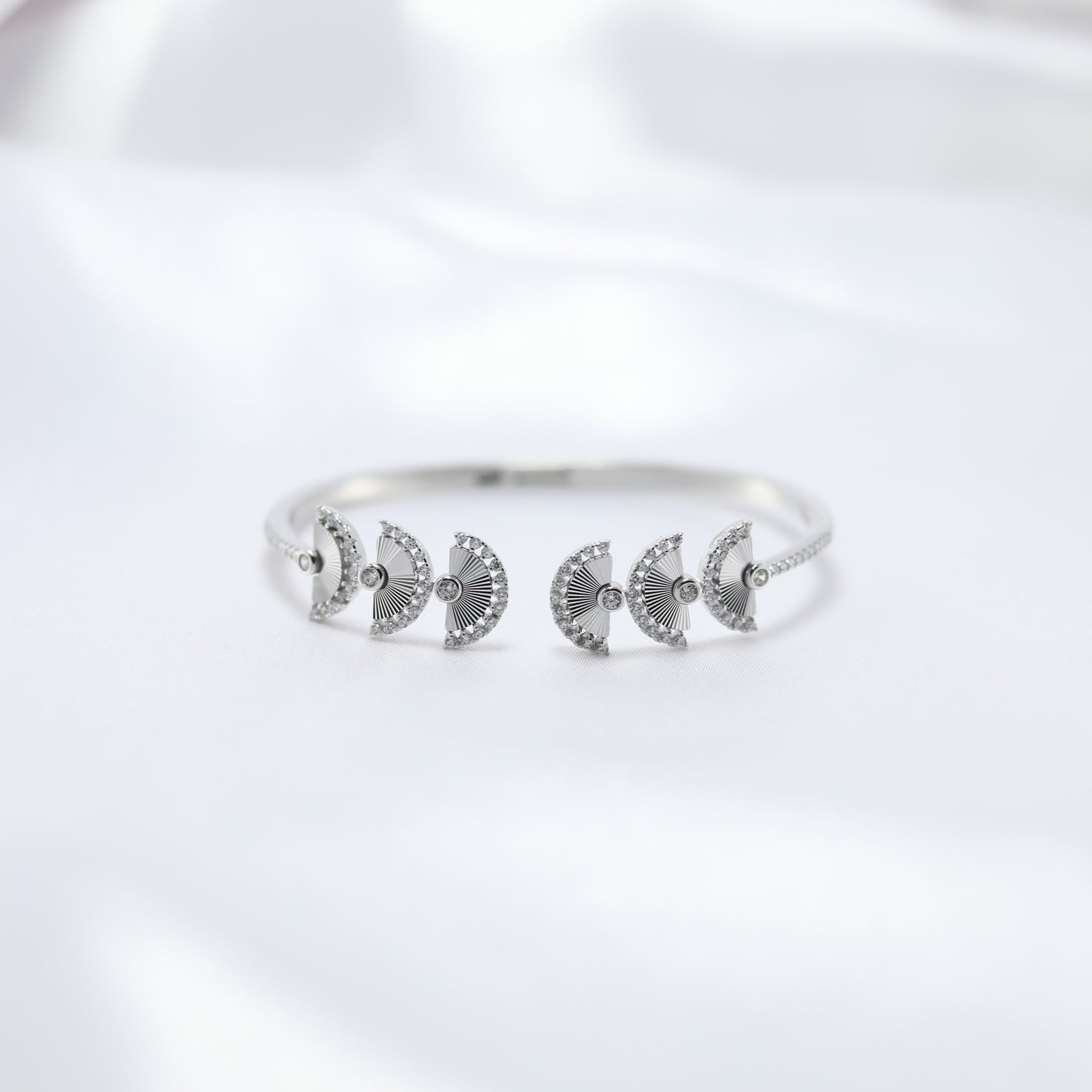 What makes this kada truly unique is the rhodium inlay nestled between each crescent, adding a sleek, polished contrast that enhances its brilliance. The combination of silver and rhodium creates a luxurious finish, ensuring both durability and an everlasting shine.