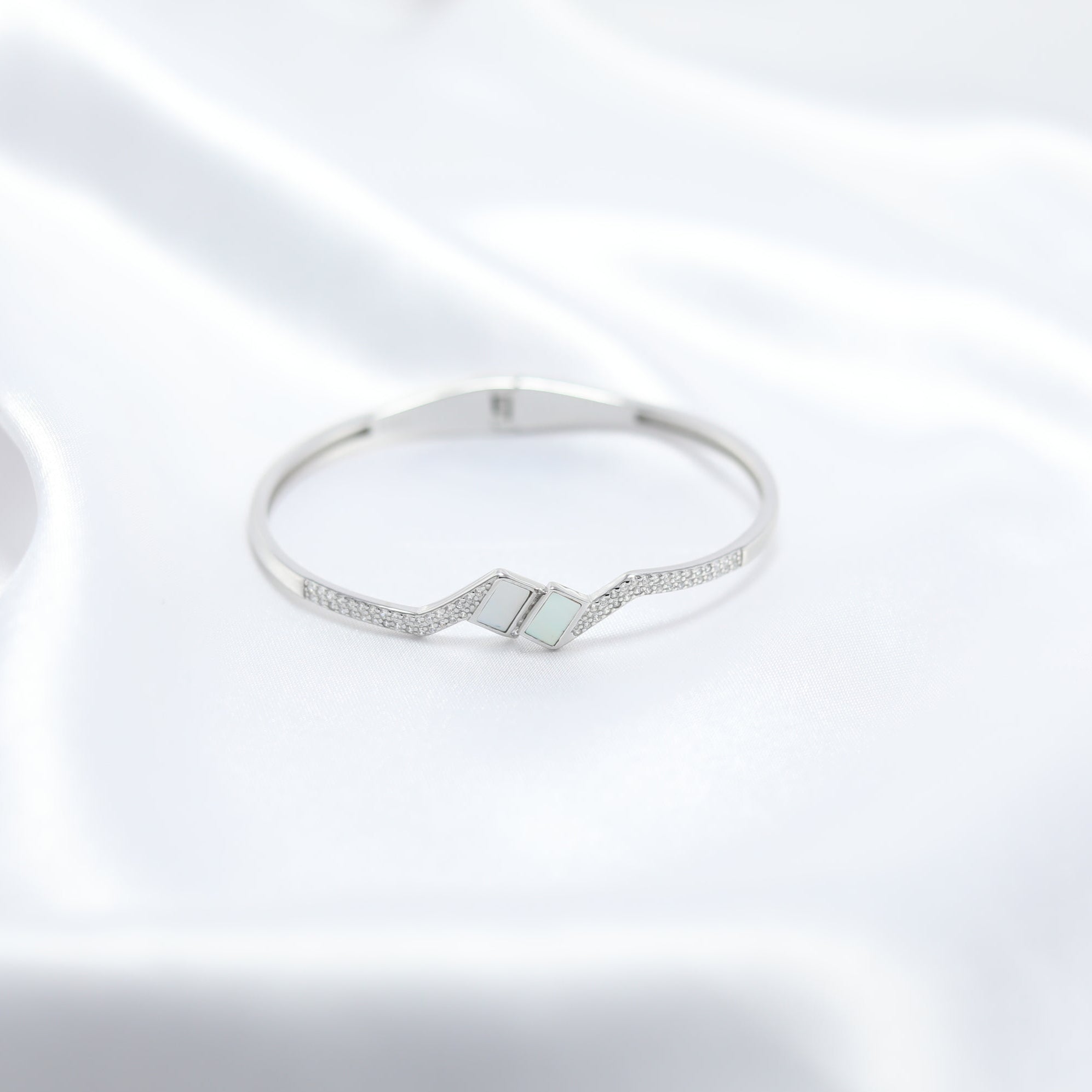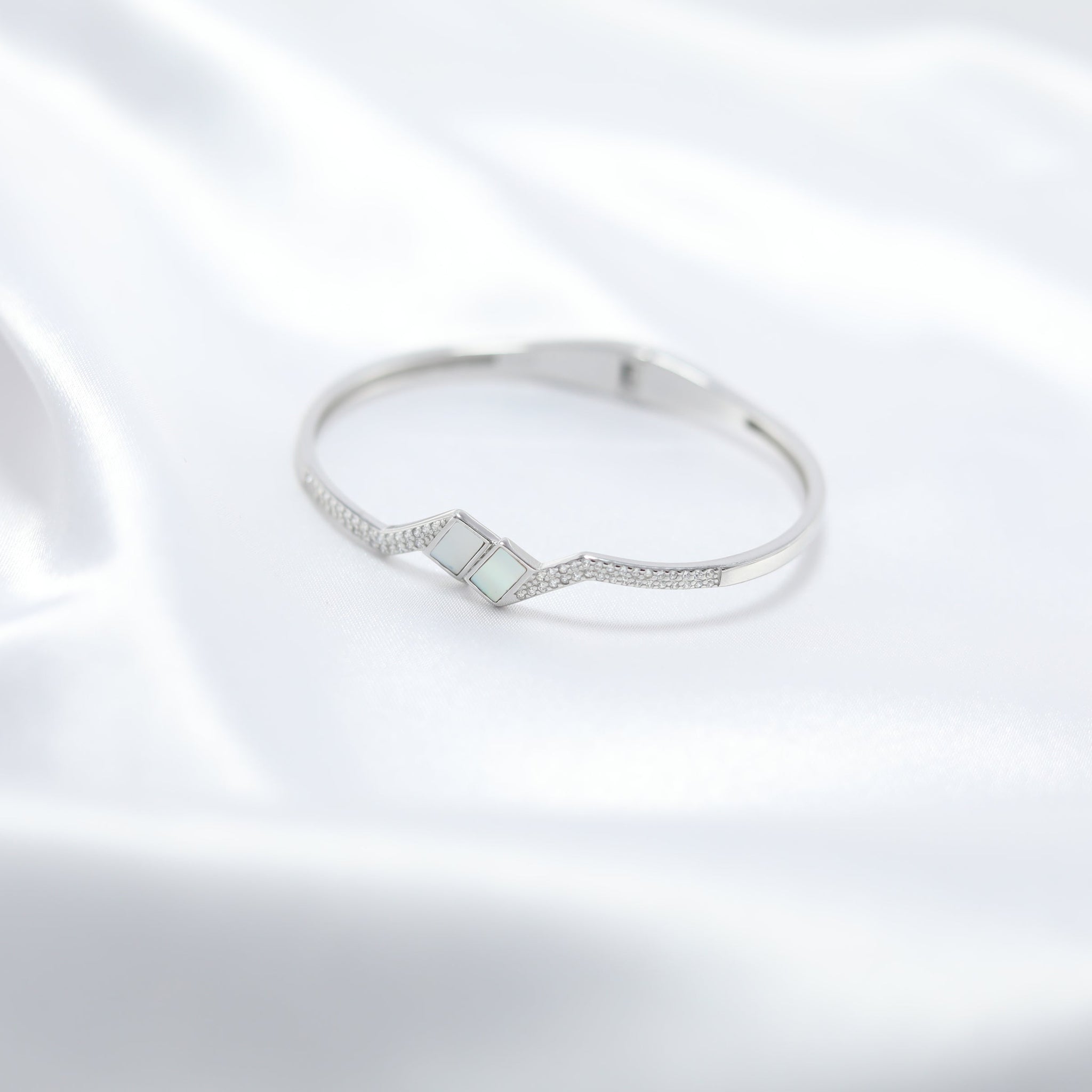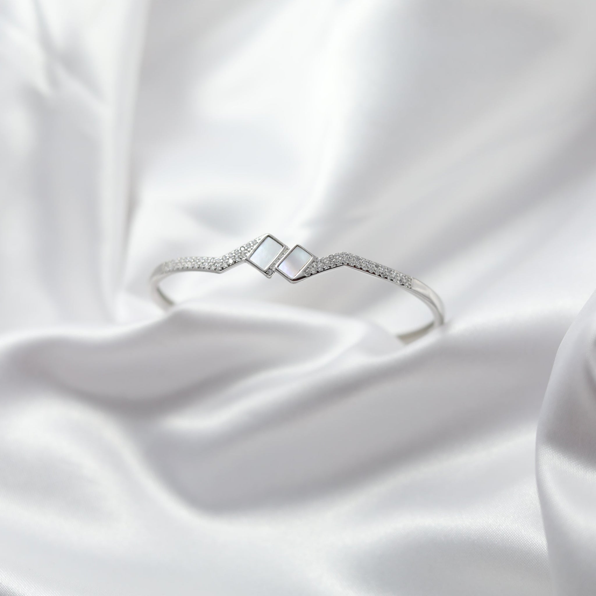 Designed for those who appreciate understated luxury, the Pearl Prism Kada is accentuated with fine cubic zirconia embellishments, adding just the right touch of sparkle. The geometric design, combined with the soft iridescence of mother-of-pearl, makes this piece both contemporary and timeless.