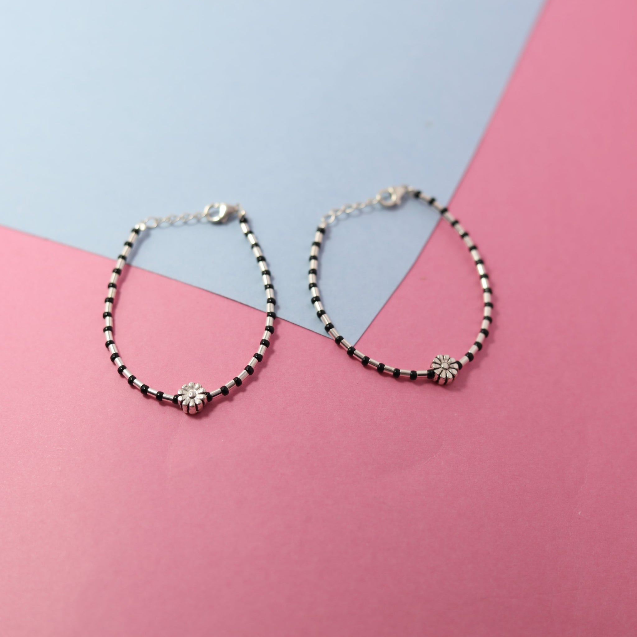 🖤 Design: Traditional black bead bracelet with a dainty silver charm