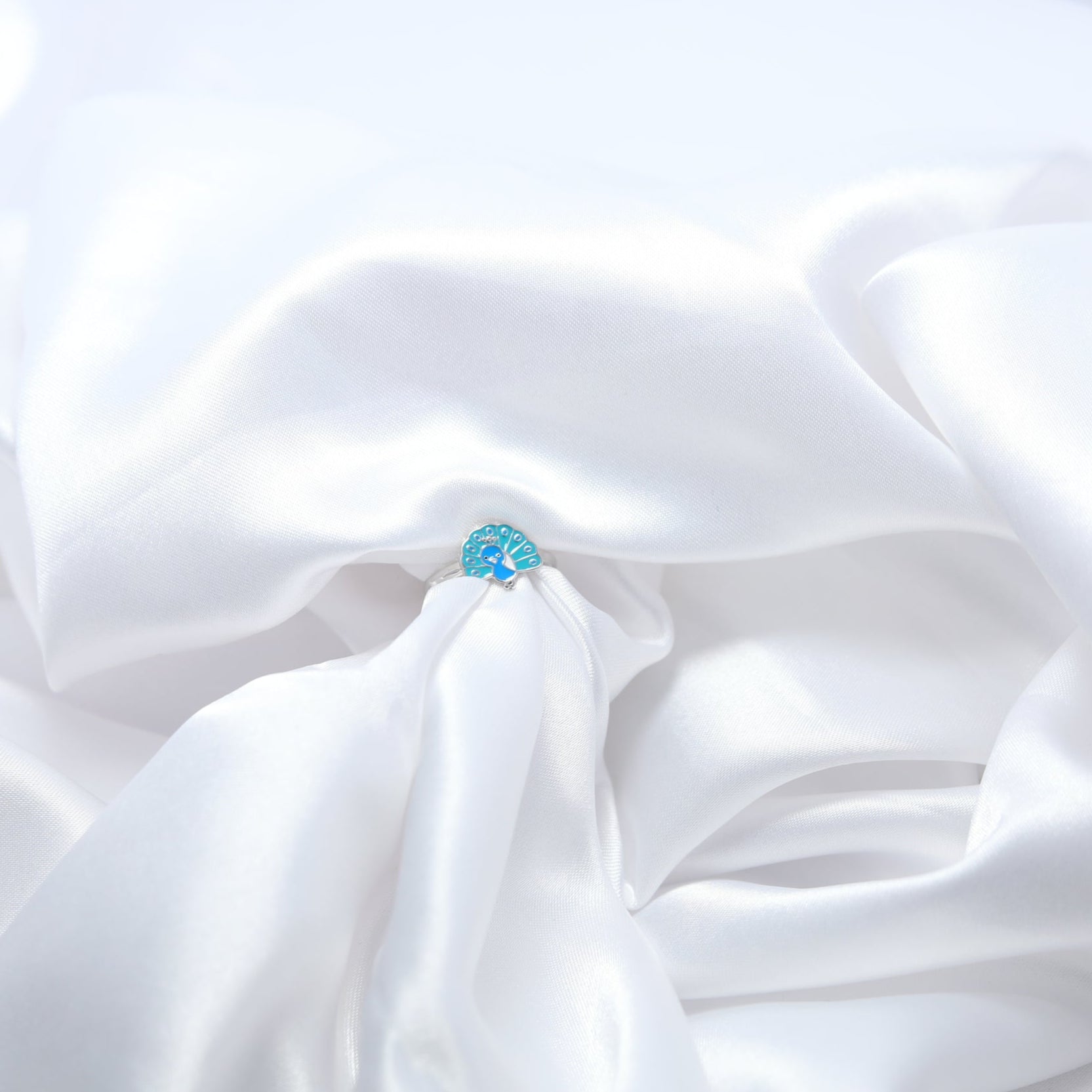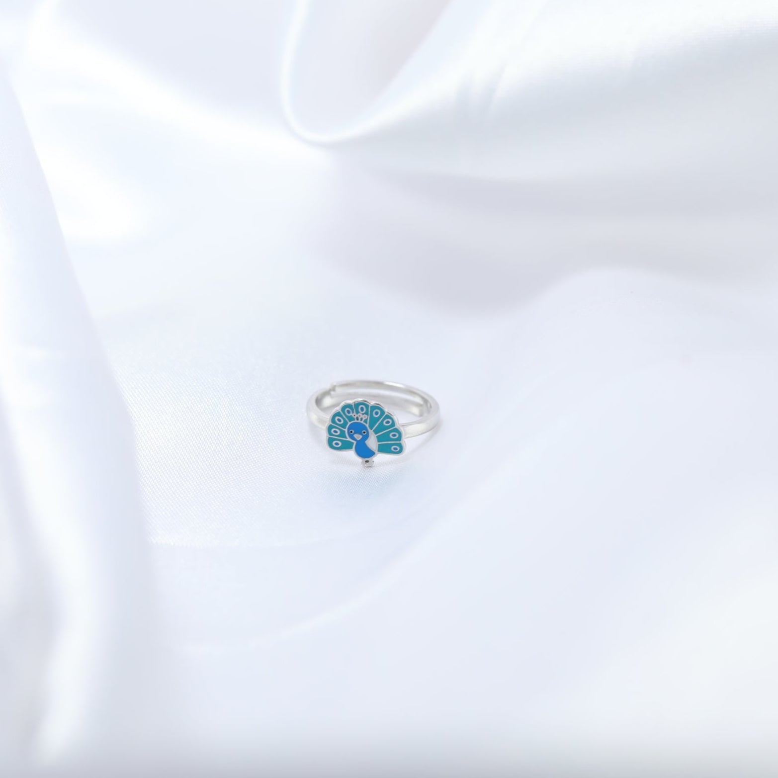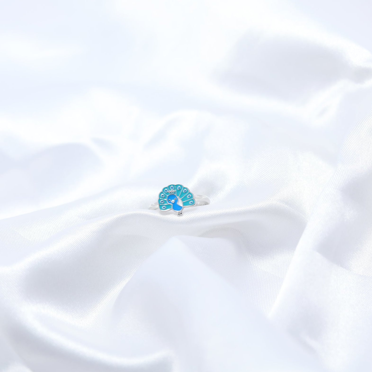 Let your little one flaunt their style with this enchanting Peacock Charm Kids' Silver Ring! Crafted from 925 sterling silver, this adorable ring features a beautifully detailed blue enamel peacock, symbolizing grace and confidence.