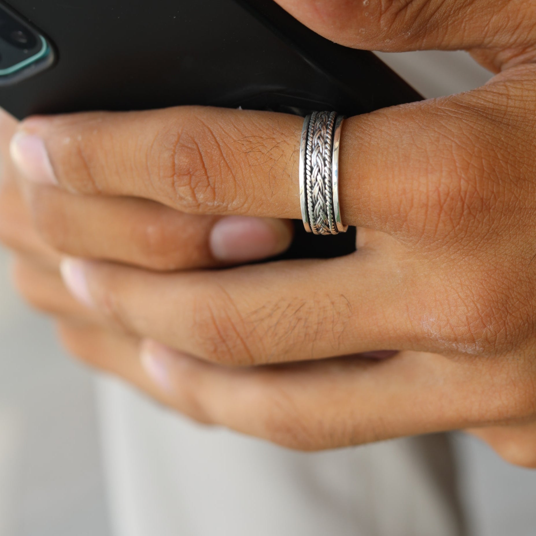 A ring that speaks of quiet strength and purposeful motion, the Braided Revolve Band is crafted for the man who finds power in the details.