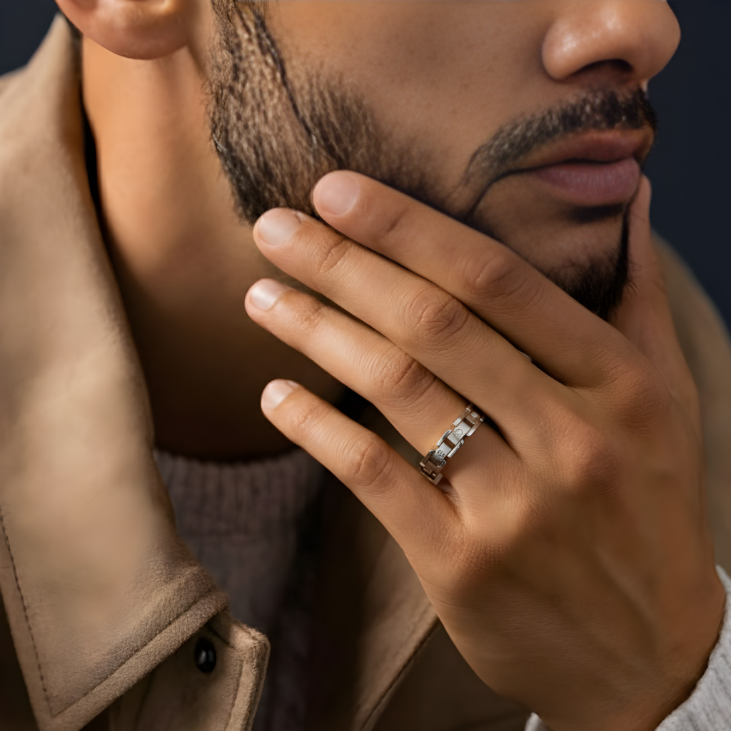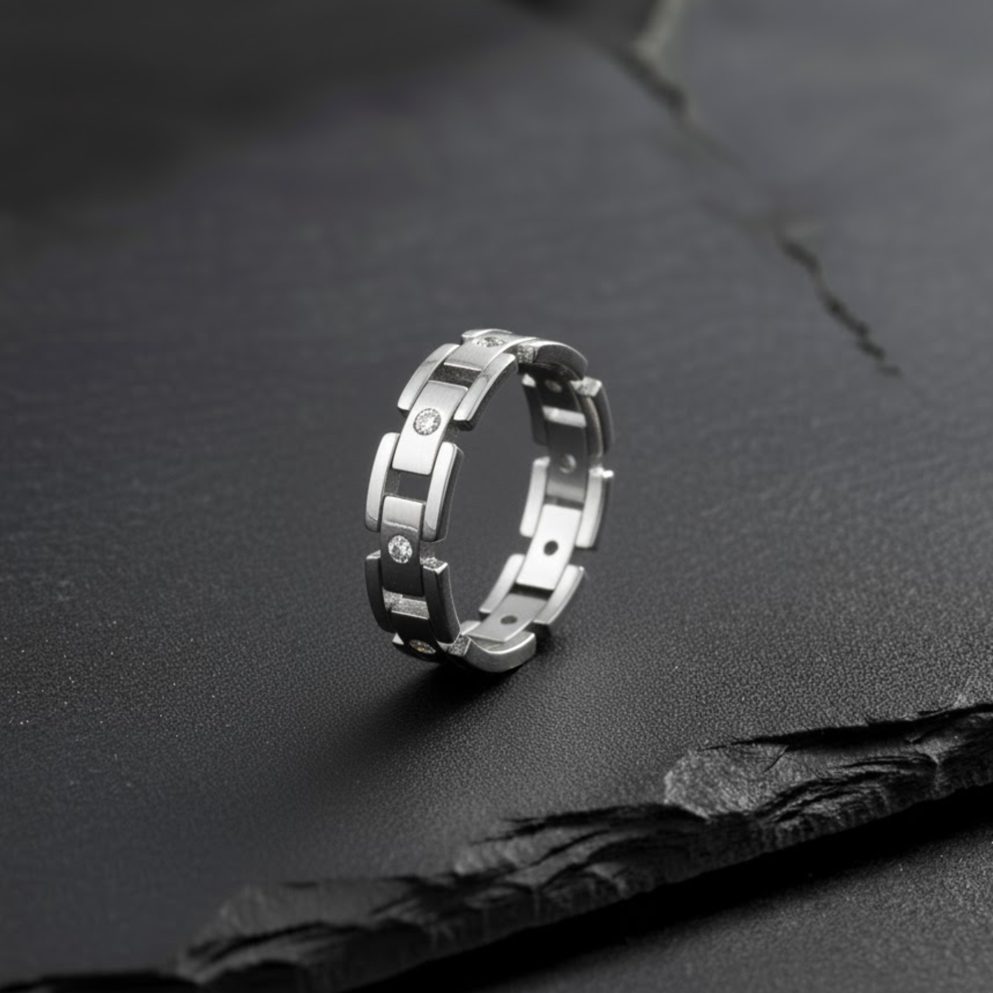 Inspired by the strength of precision engineering, The Link Band channels the spirit of motion and masculinity into a striking design.