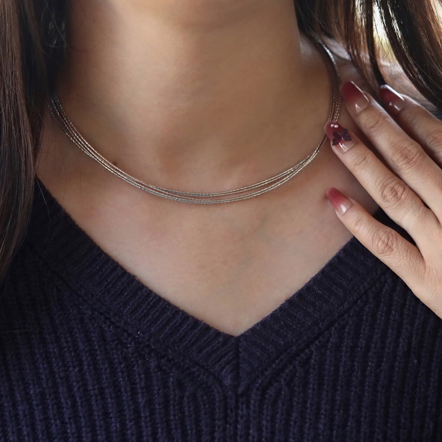 Elevate your style with the Panch Tara Choker, a stunning five-layer necklace crafted from premium 925 sterling silver. Designed for effortless sophistication, this choker drapes beautifully around the neck, creating a layered yet minimalistic look that suits every occasion.