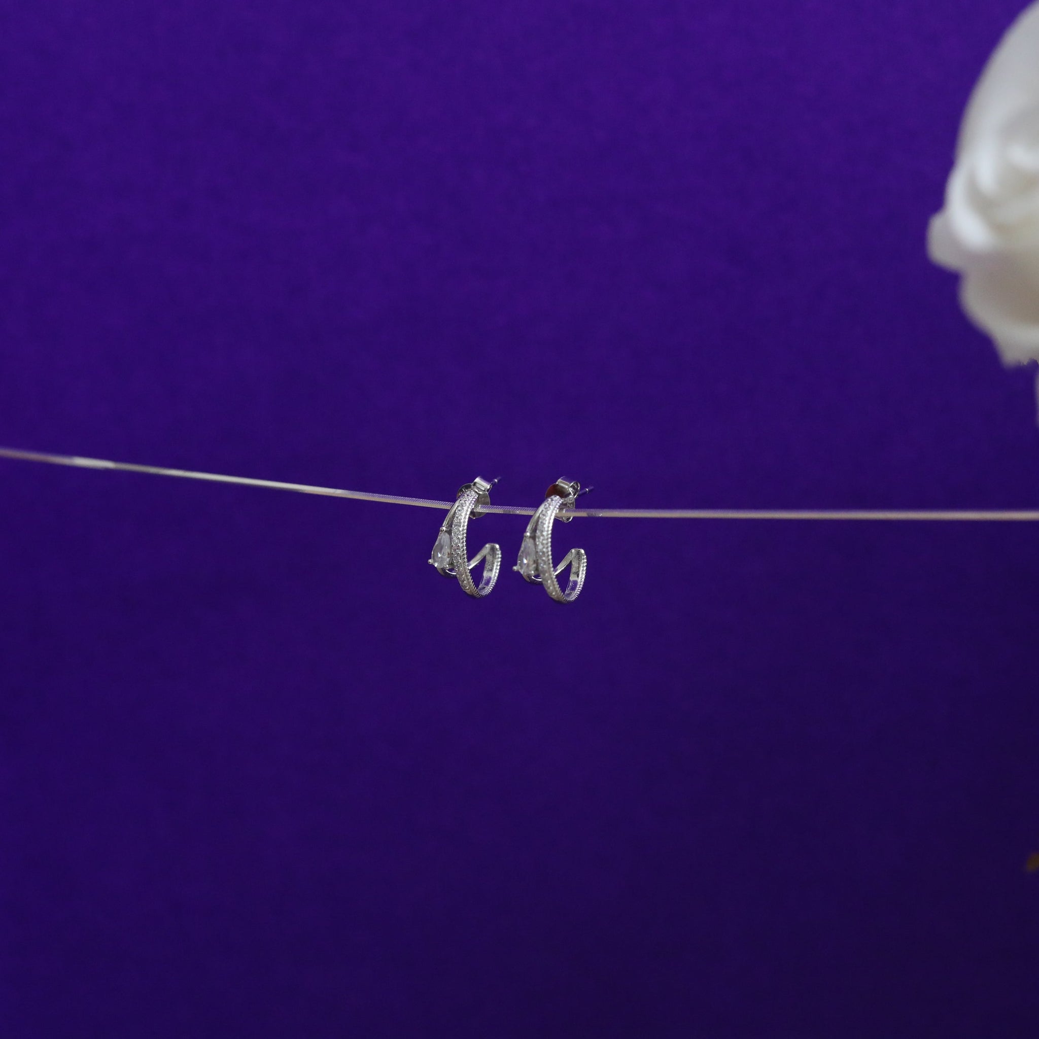Introducing the Raabta Hoops — where simplicity meets soulful design. These uniquely sculpted silver hoops feature a graceful teardrop silhouette with a delicate hollow heart at the base, symbolizing connection, emotion, and elegance. Lightweight and versatile, they’re your go-to piece for moments that matter.
