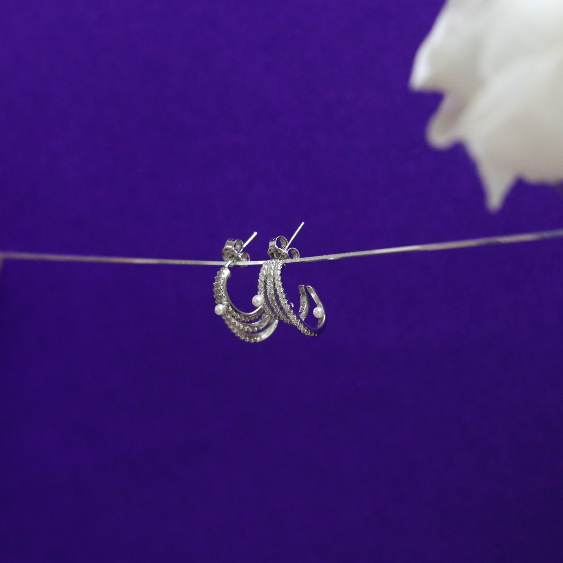 Meet the Noorika Hoops — a dazzling trio of elegance, charm, and sparkle. Crafted in premium silver and adorned with delicately placed cubic zirconia stones, these layered hoops add just the right amount of glam to your everyday or festive look. The subtle drop detailing at the center adds movement and flair, making these earrings a perfect pick for those who love their jewelry to speak without shouting.
