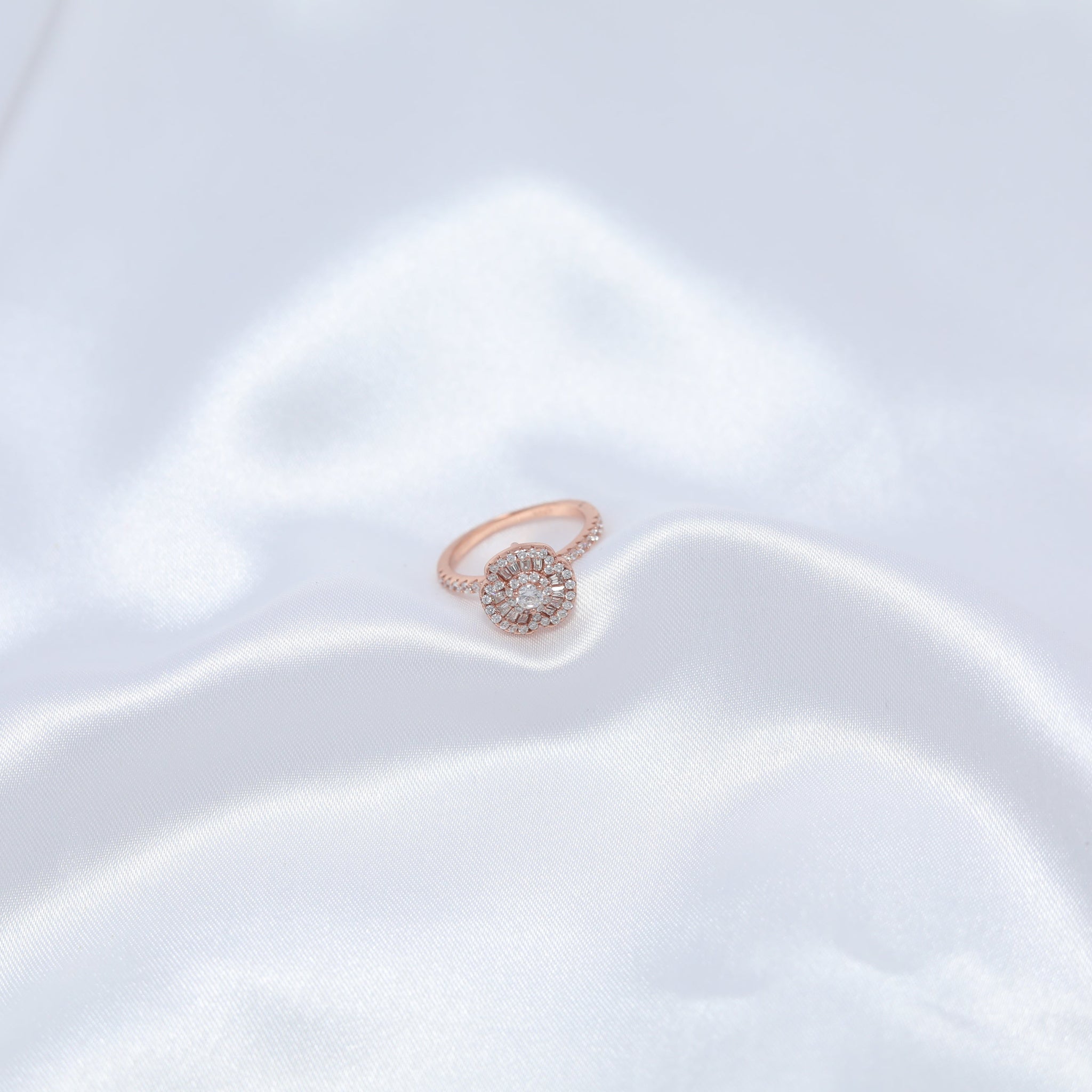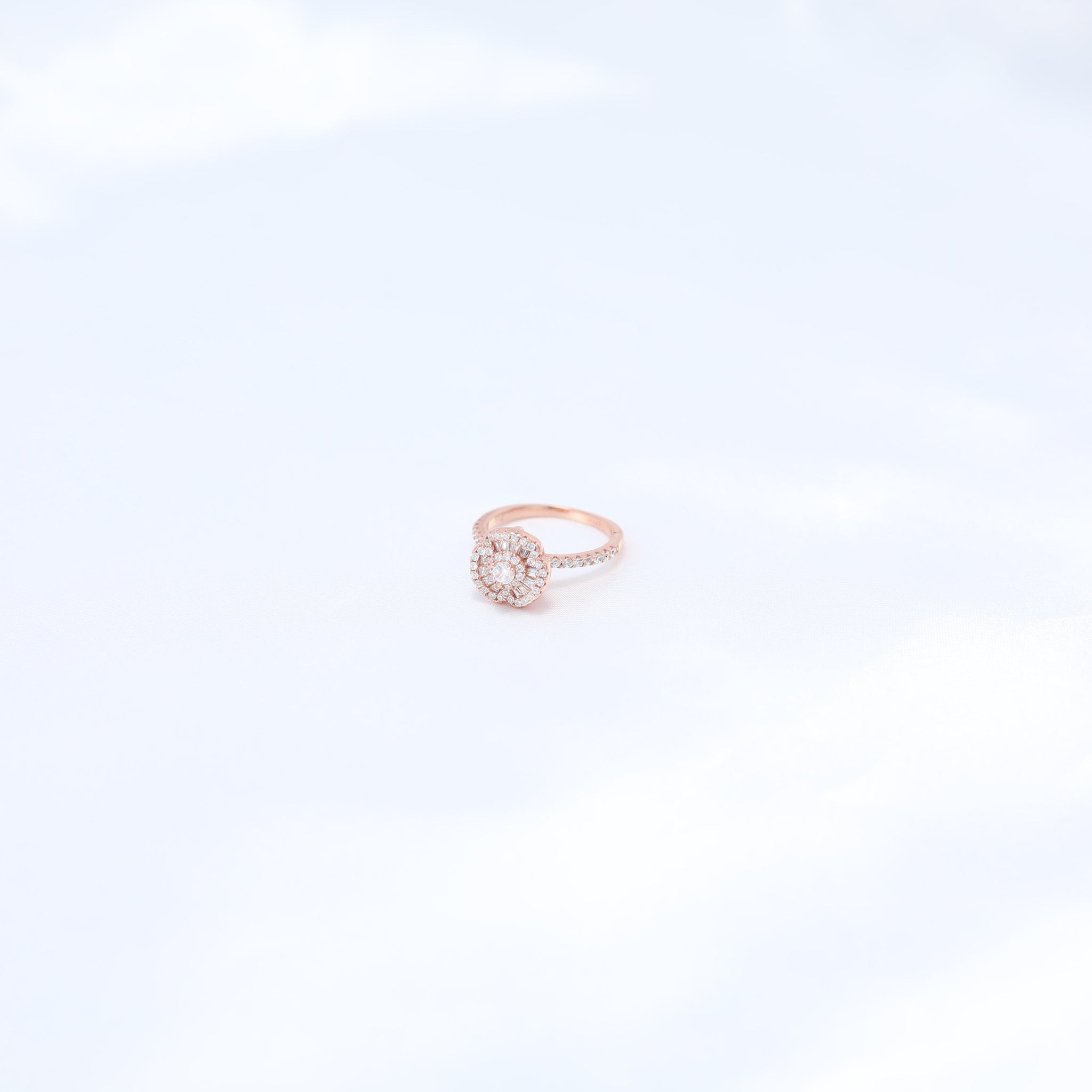 Design: A floral-inspired cluster design surrounded by a halo of shimmering stones.