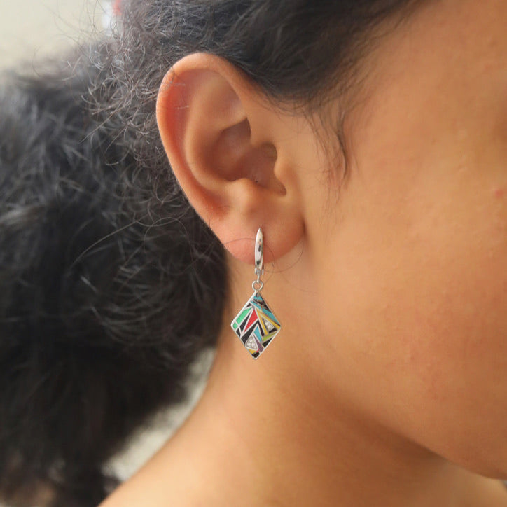 - Design: Sleek geometric shapes with colorful enamel inlays