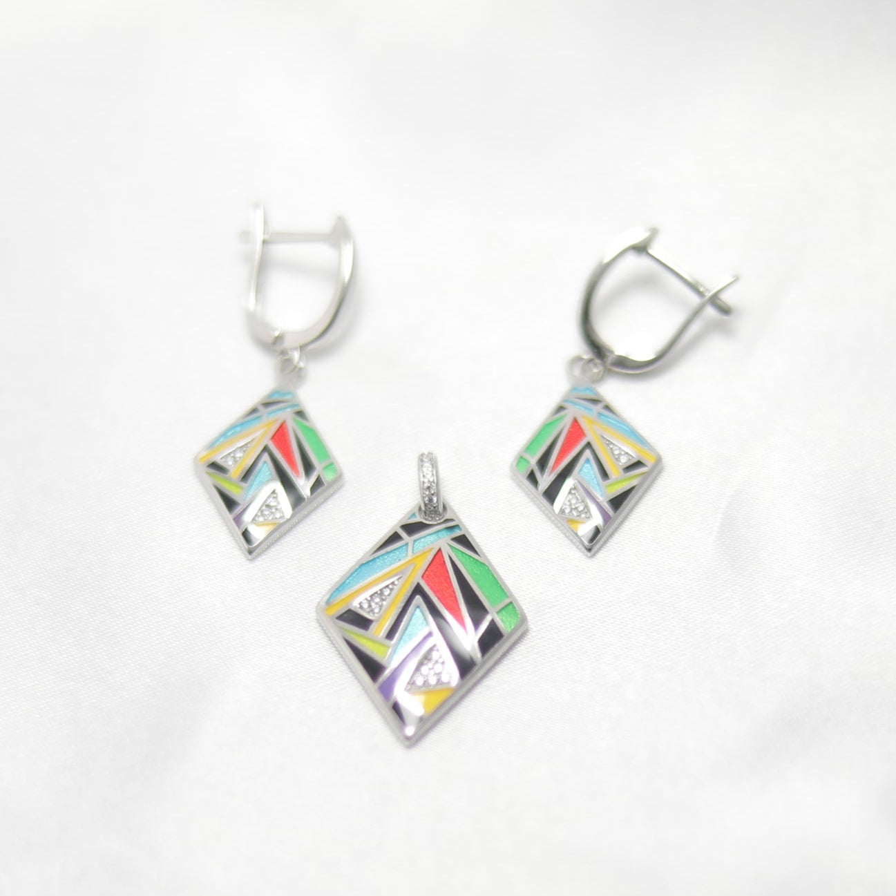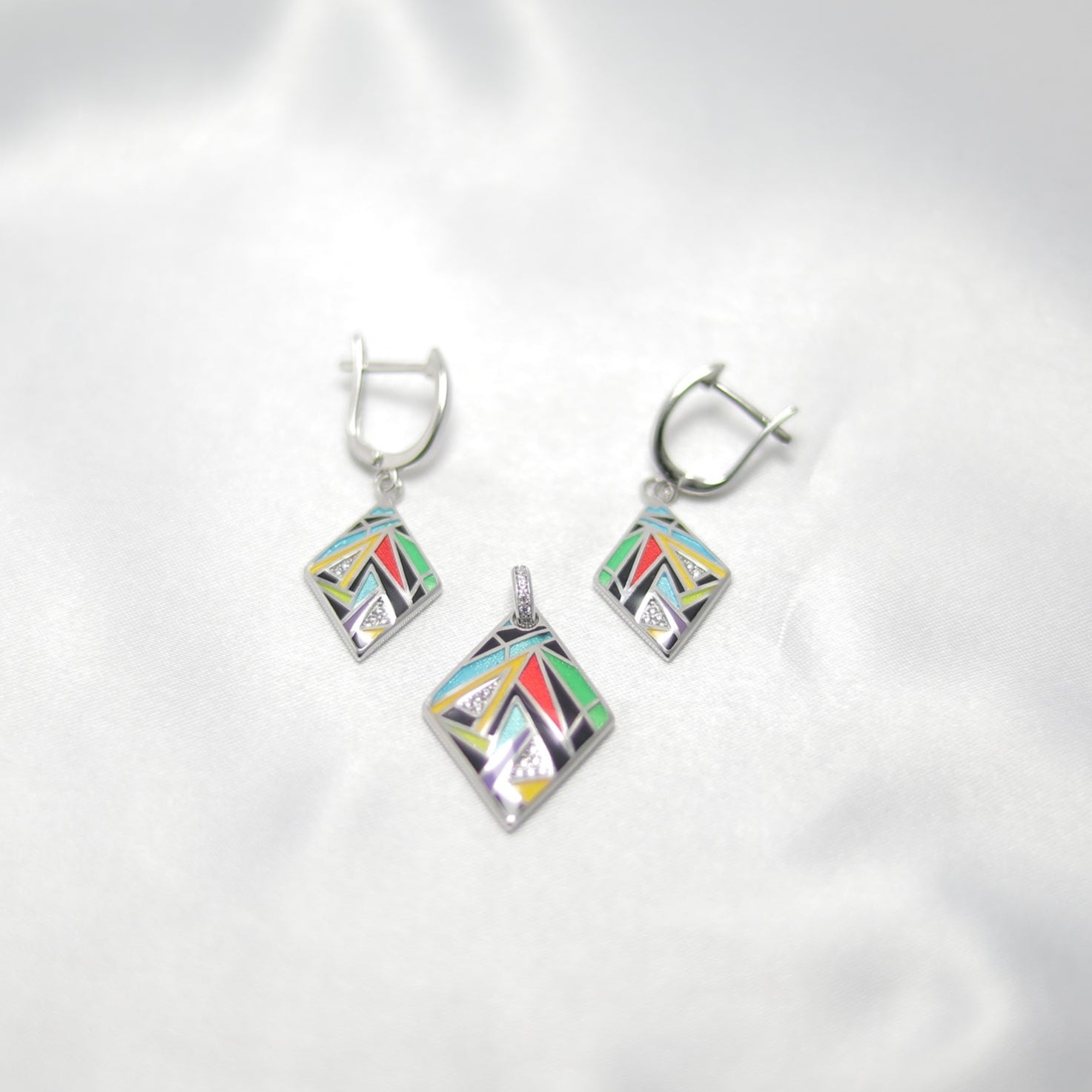 Bold, modern, and effortlessly chic—the GeoLuxe Pendant Set is a statement of contemporary elegance. Crafted from premium sterling silver, this set features a striking geometric design, enhanced with vibrant enamel detailing and delicate stone accents for a touch of sophistication.