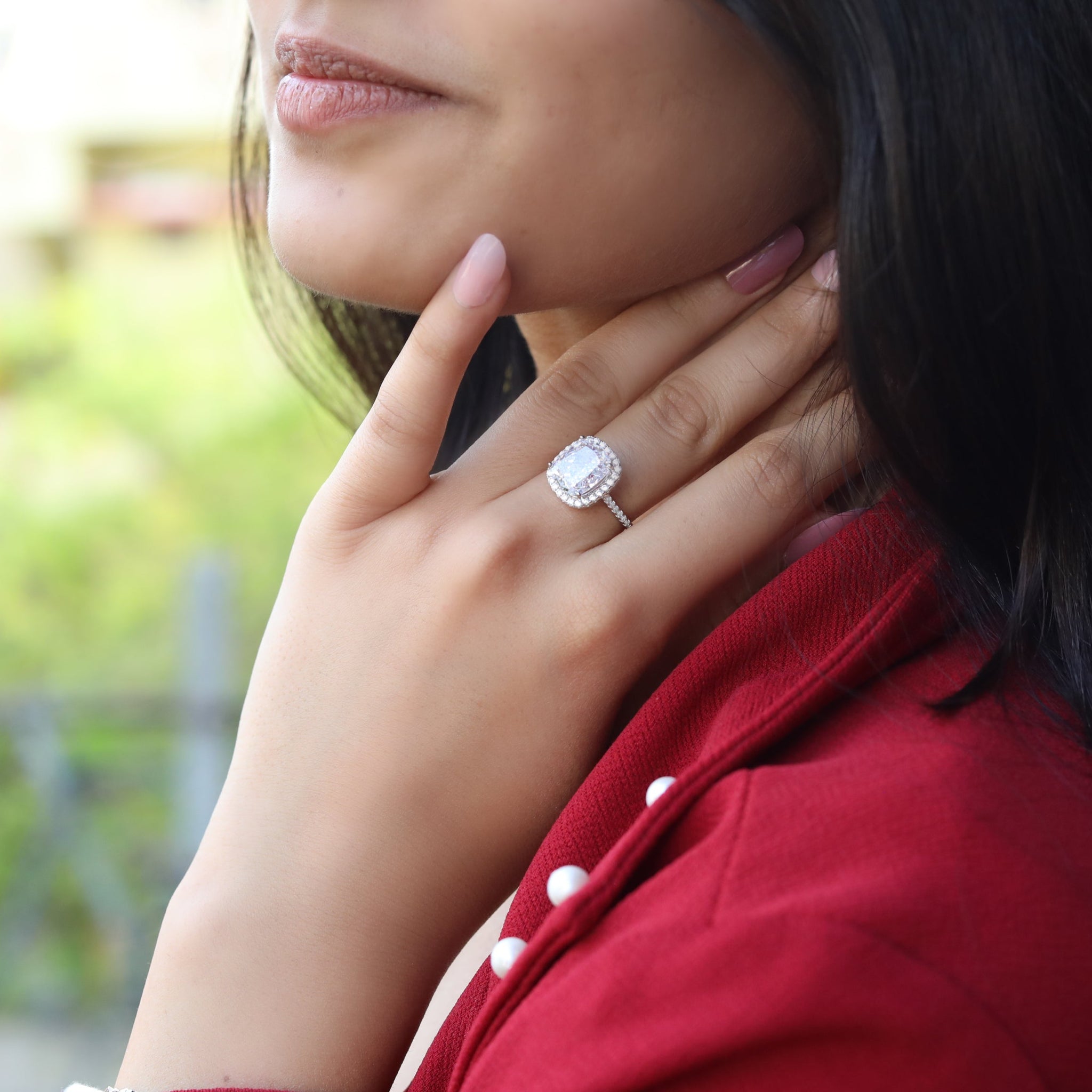 ✔ Stone: ice-cut white gemstone with a zirconia halo