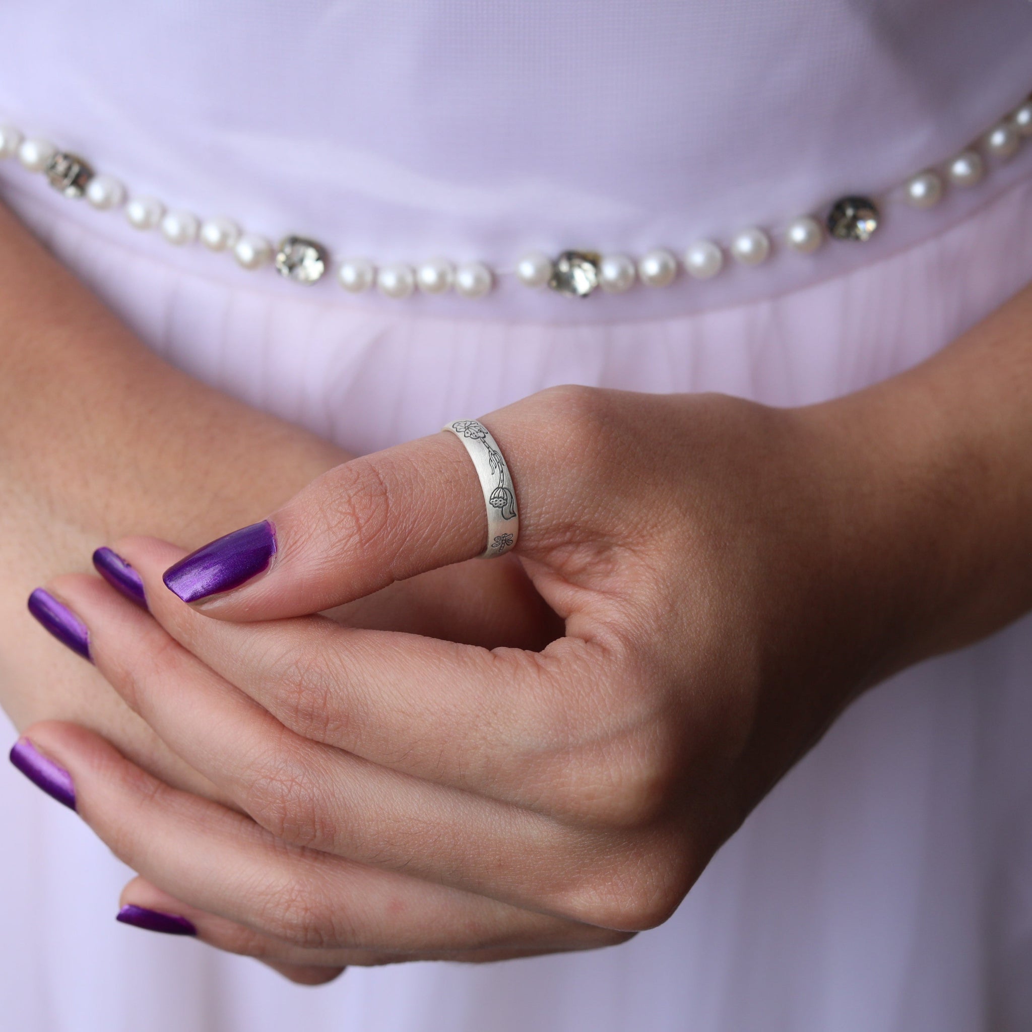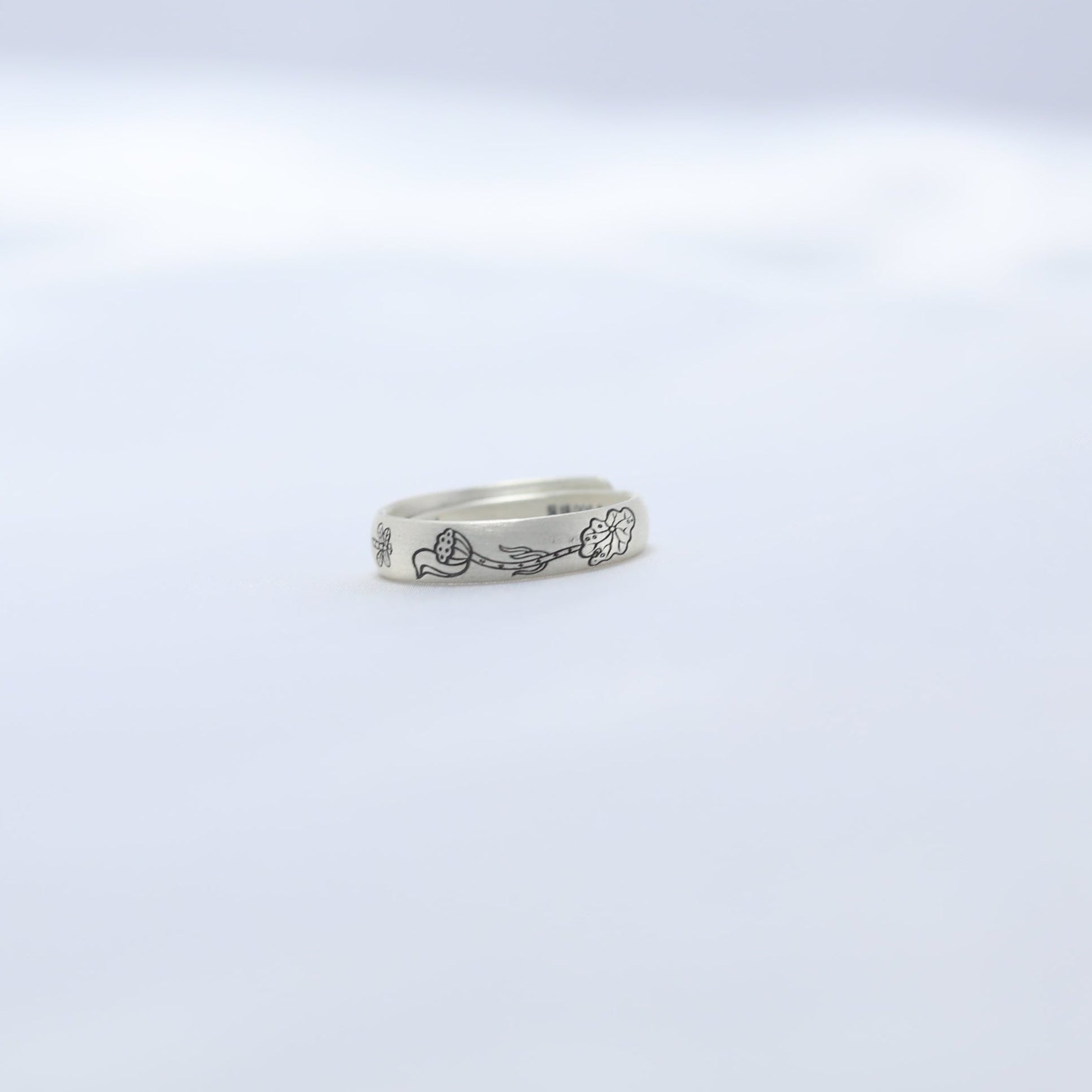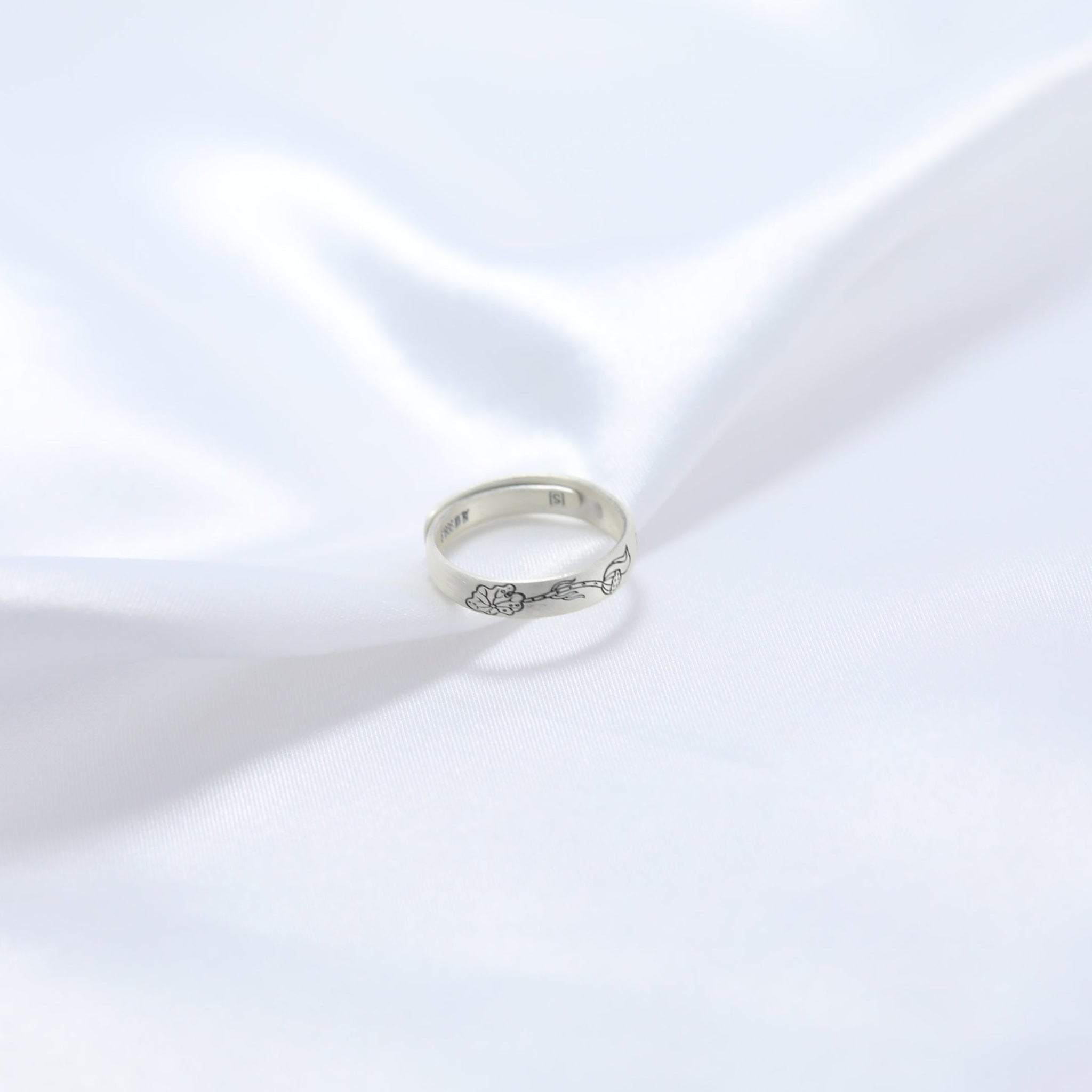 Celebrate the beauty of nature with the Blossom Band, a dainty ring crafted from pure 999 silver, ensuring unparalleled quality and radiance. Featuring delicate floral engravings that symbolize grace and renewal, this ring embodies minimalist elegance. The smooth band, combined with intricate detailing, makes it perfect for everyday wear or a meaningful gift.