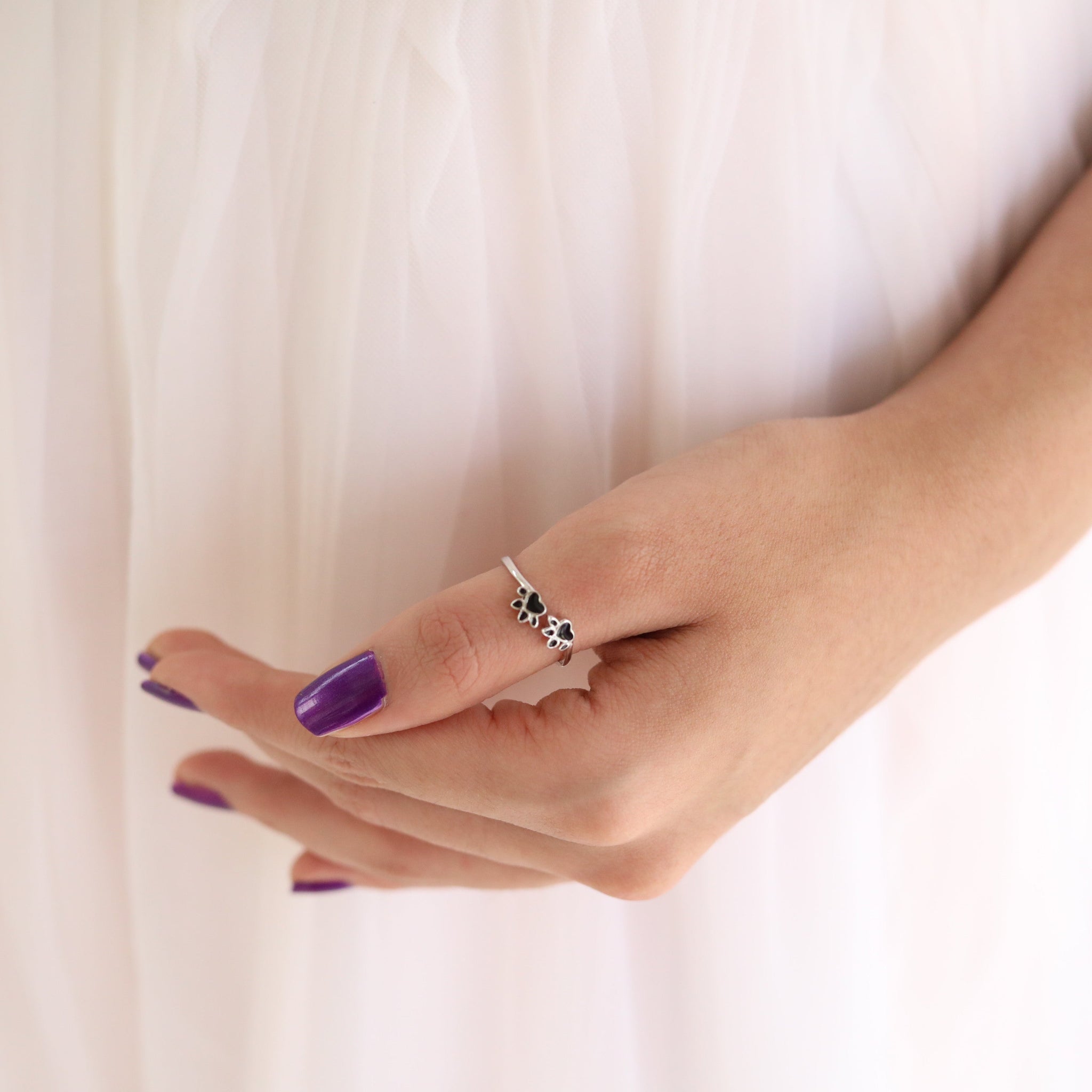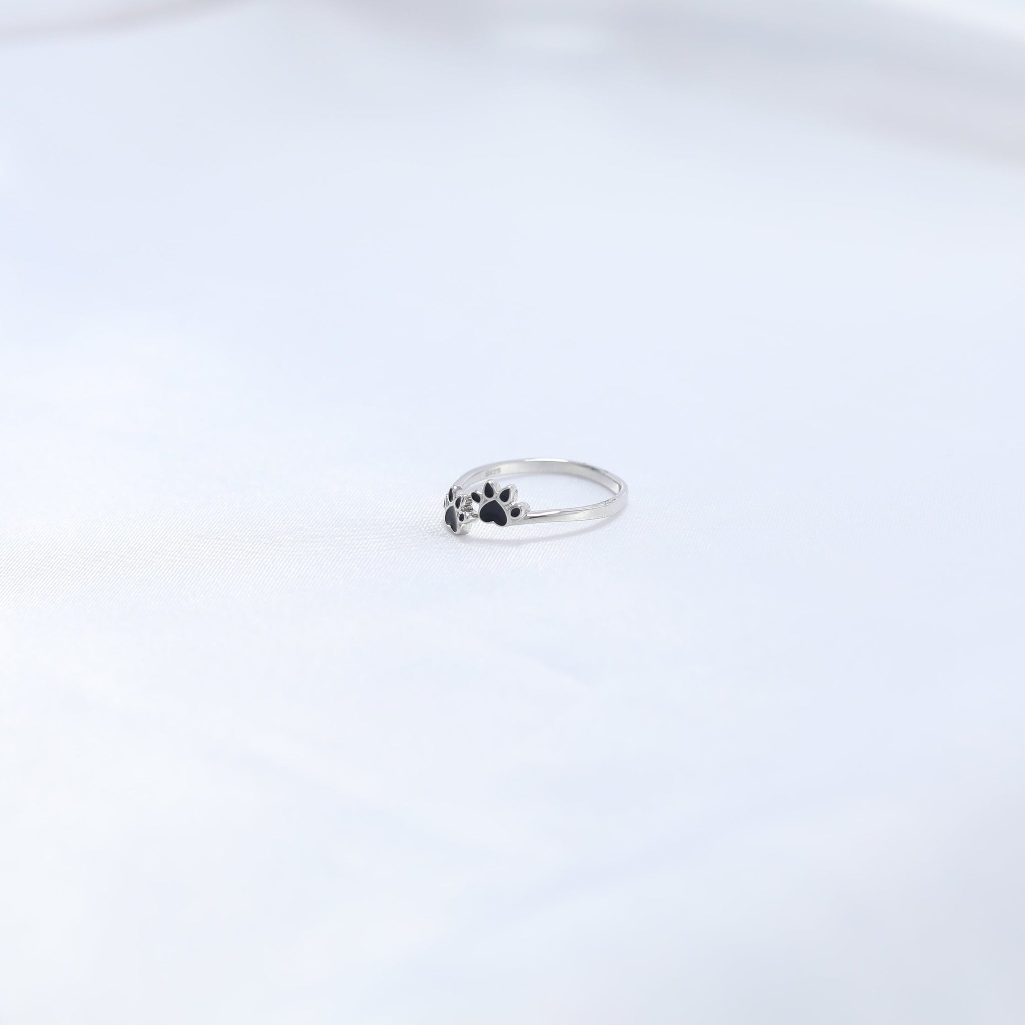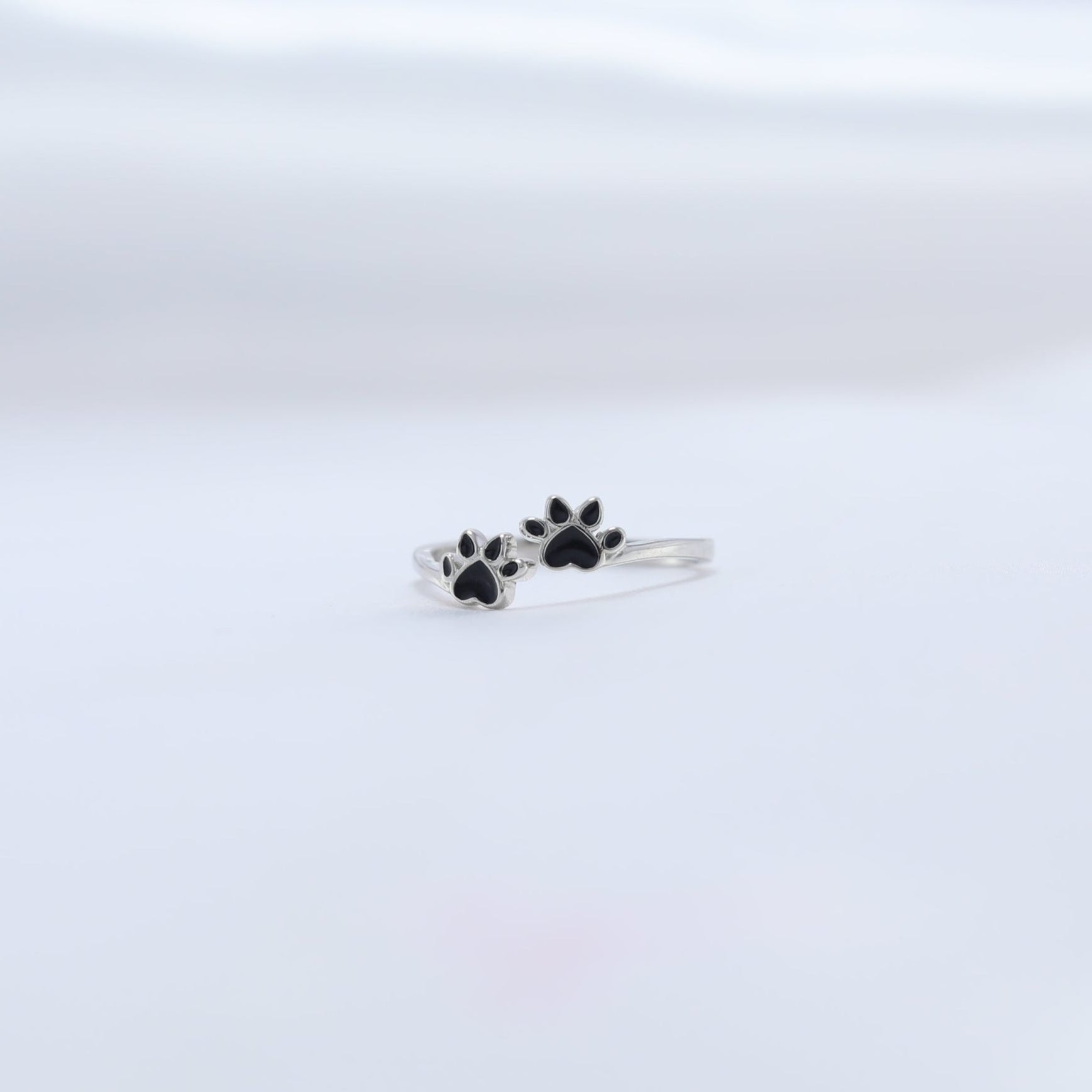 Celebrate your bond with your furry friends with the Pawfect Love Ring. Featuring two dainty paw prints in sleek black enamel, this sterling silver ring is a heartwarming tribute to the unconditional love pets bring into our lives. Minimalist yet meaningful, this ring is the perfect choice for pet lovers who cherish their paw-some companions.