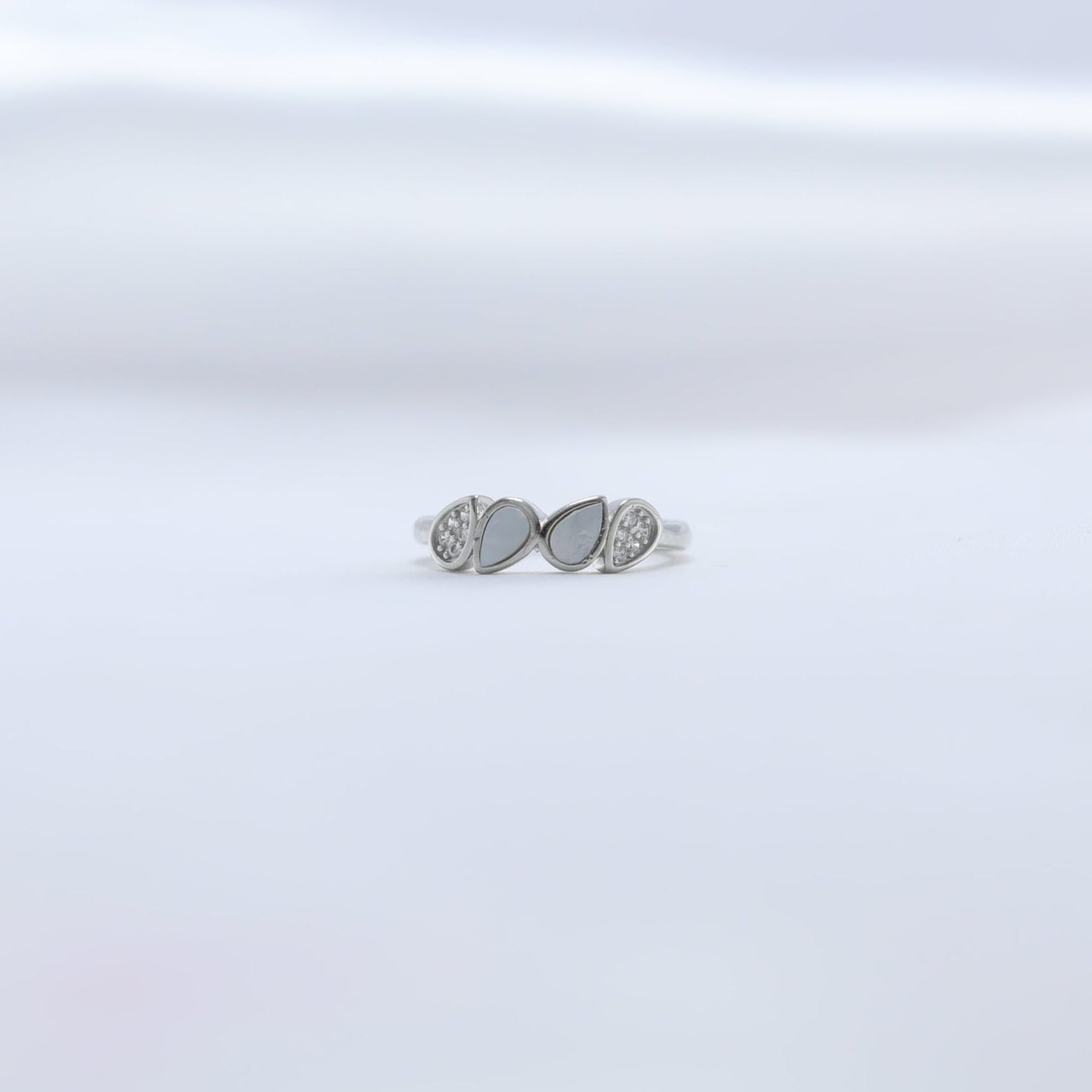 The Noor Petal Ring is a stunning tribute to nature's pure beauty. Featuring four delicate petal designs adorned with luminous mother-of-pearl inlays, this sterling silver masterpiece exudes elegance and grace. The iridescent glow of the mother-of-pearl highlights the ring's ethereal charm, making it a perfect choice for those who love timeless, nature-inspired jewelry.