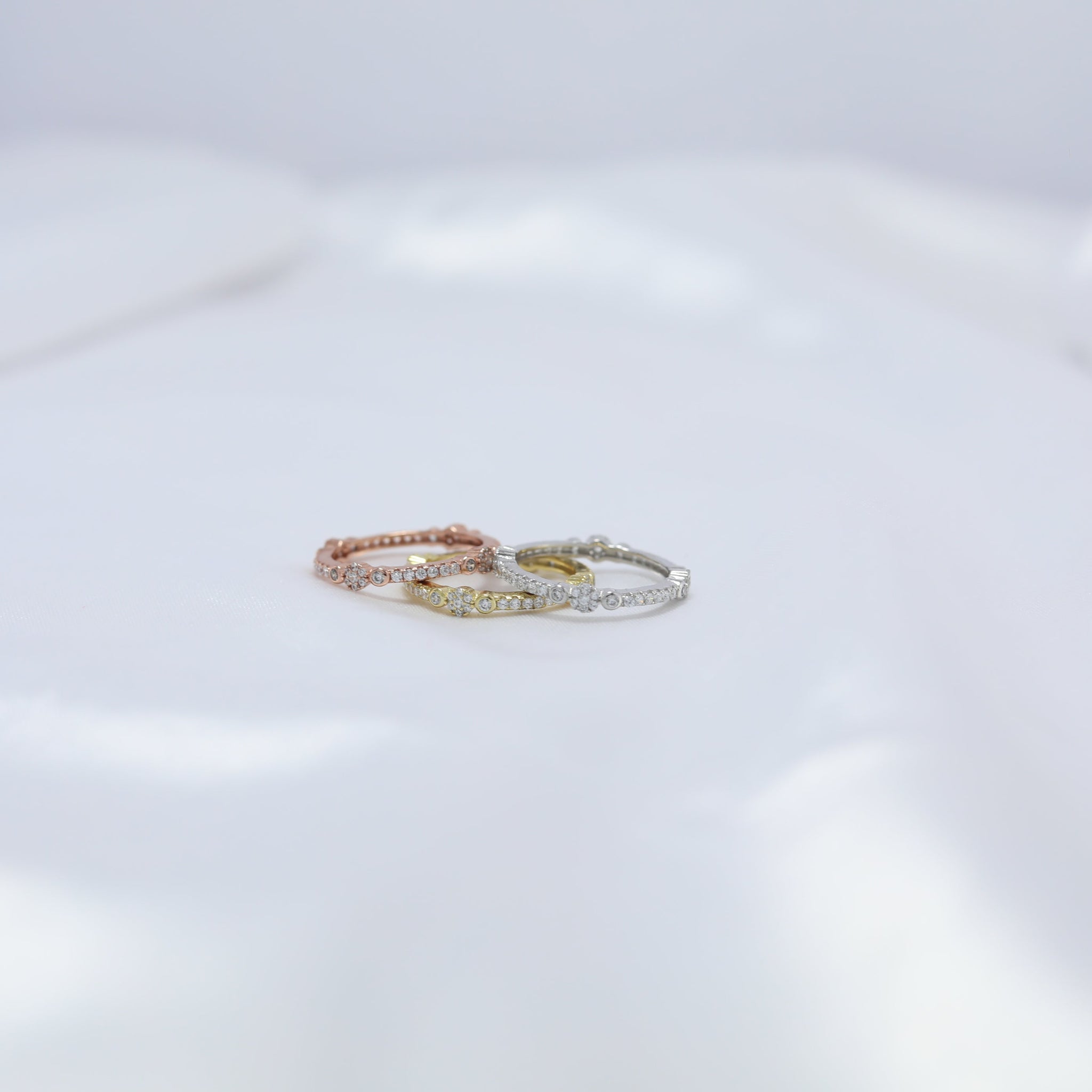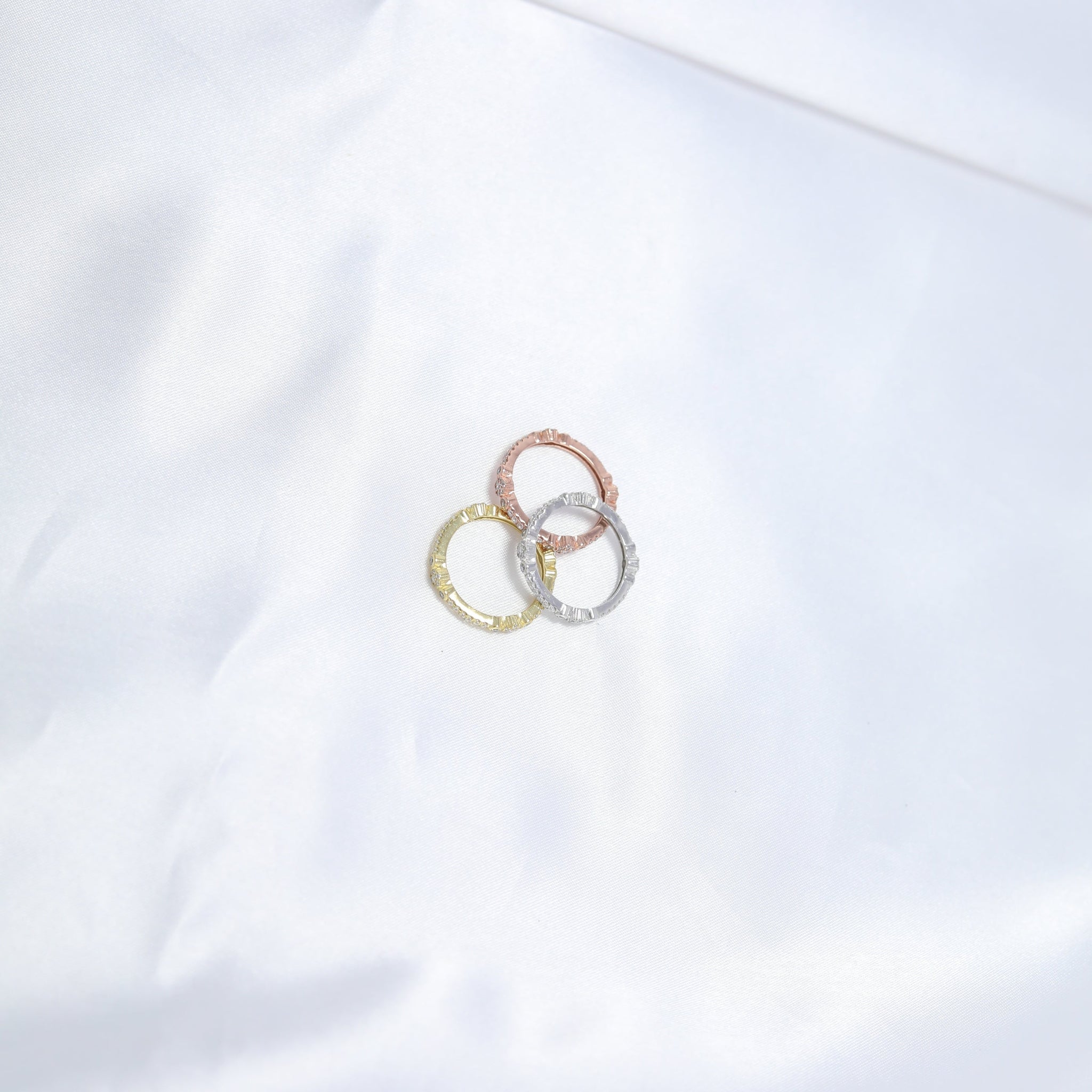 Design: Delicate textured bands adorned with dainty patterns for a unique touch