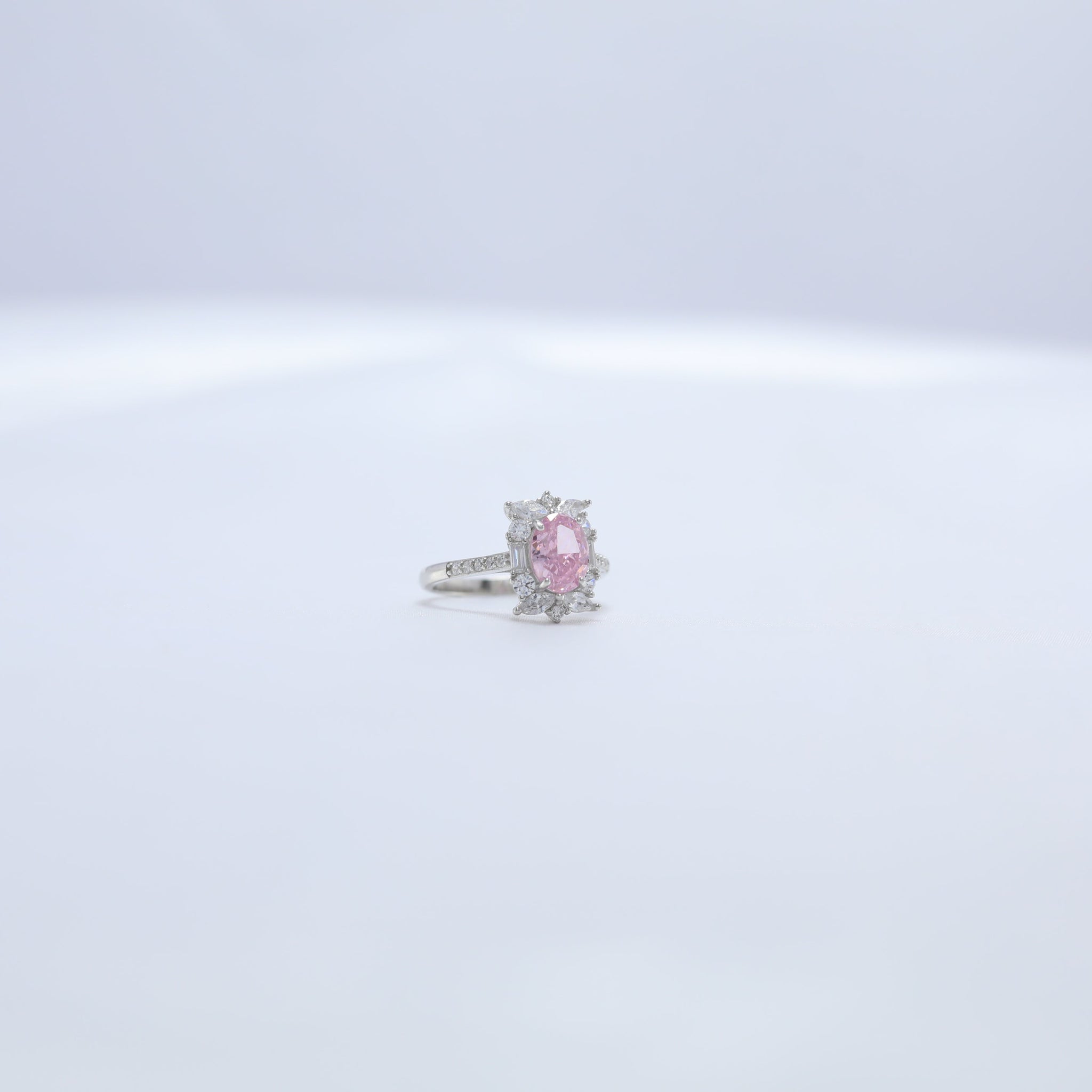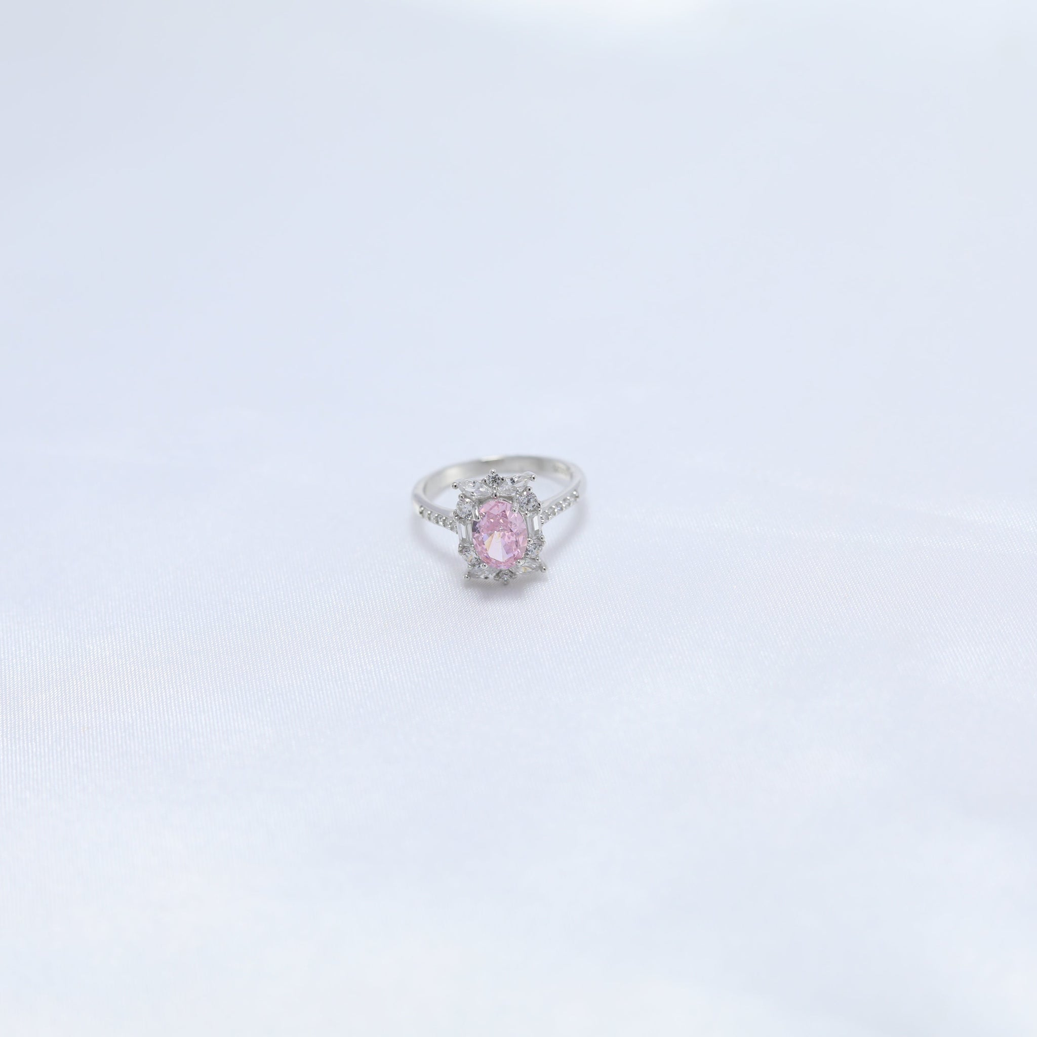 Surrounding Stones: Sparkling white Cubic Zirconia in a floral halo design