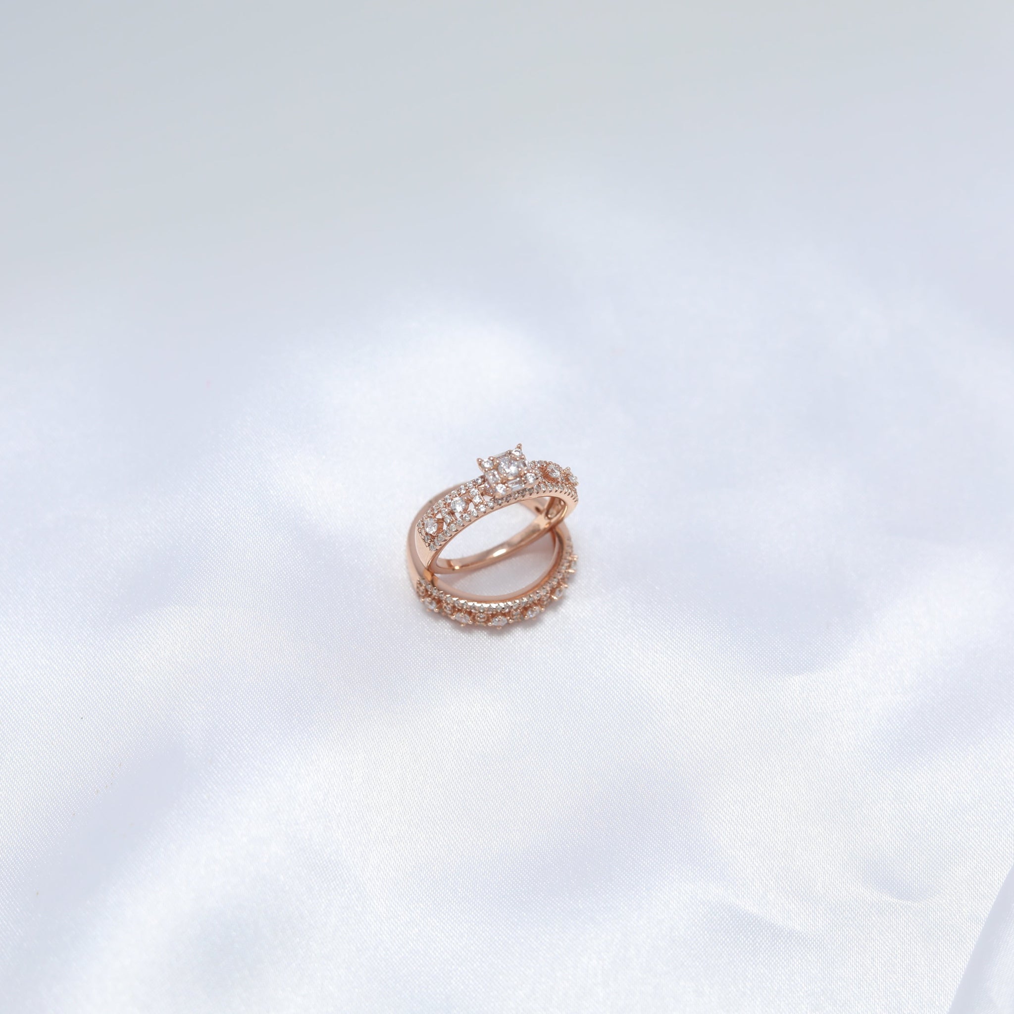 This exquisite ring is designed with intricate craftsmanship, featuring a dazzling centerpiece that commands attention. The shimmering stones encircle the design like a halo, reminiscent of a crown’s glory. Its luxurious rose-gold finish and refined detailing make it a statement of elegance, whether worn at a grand celebration or cherished as an everyday luxury.