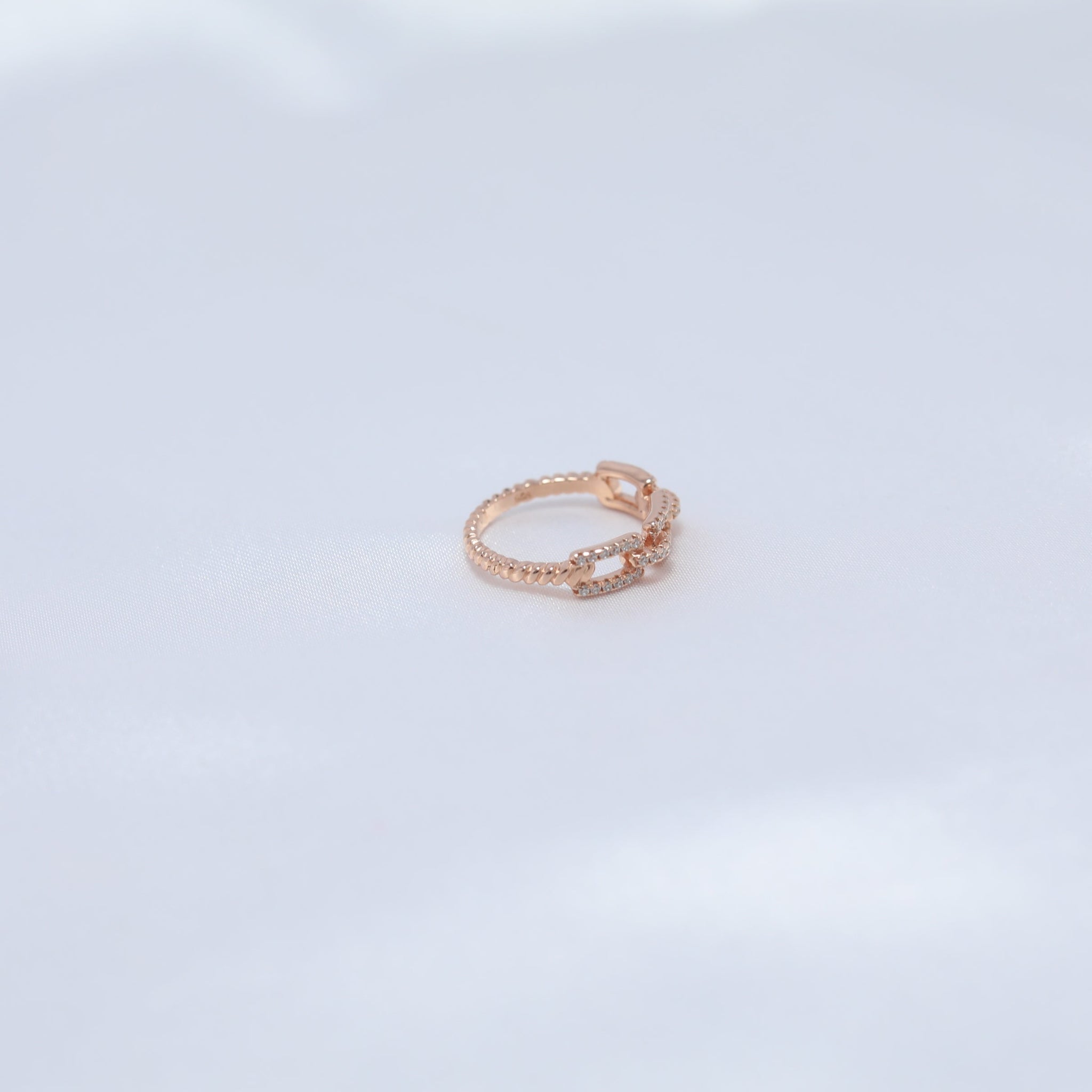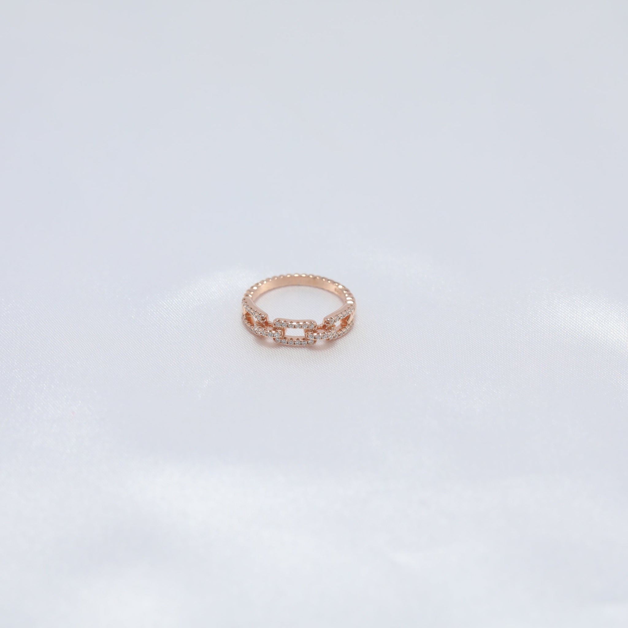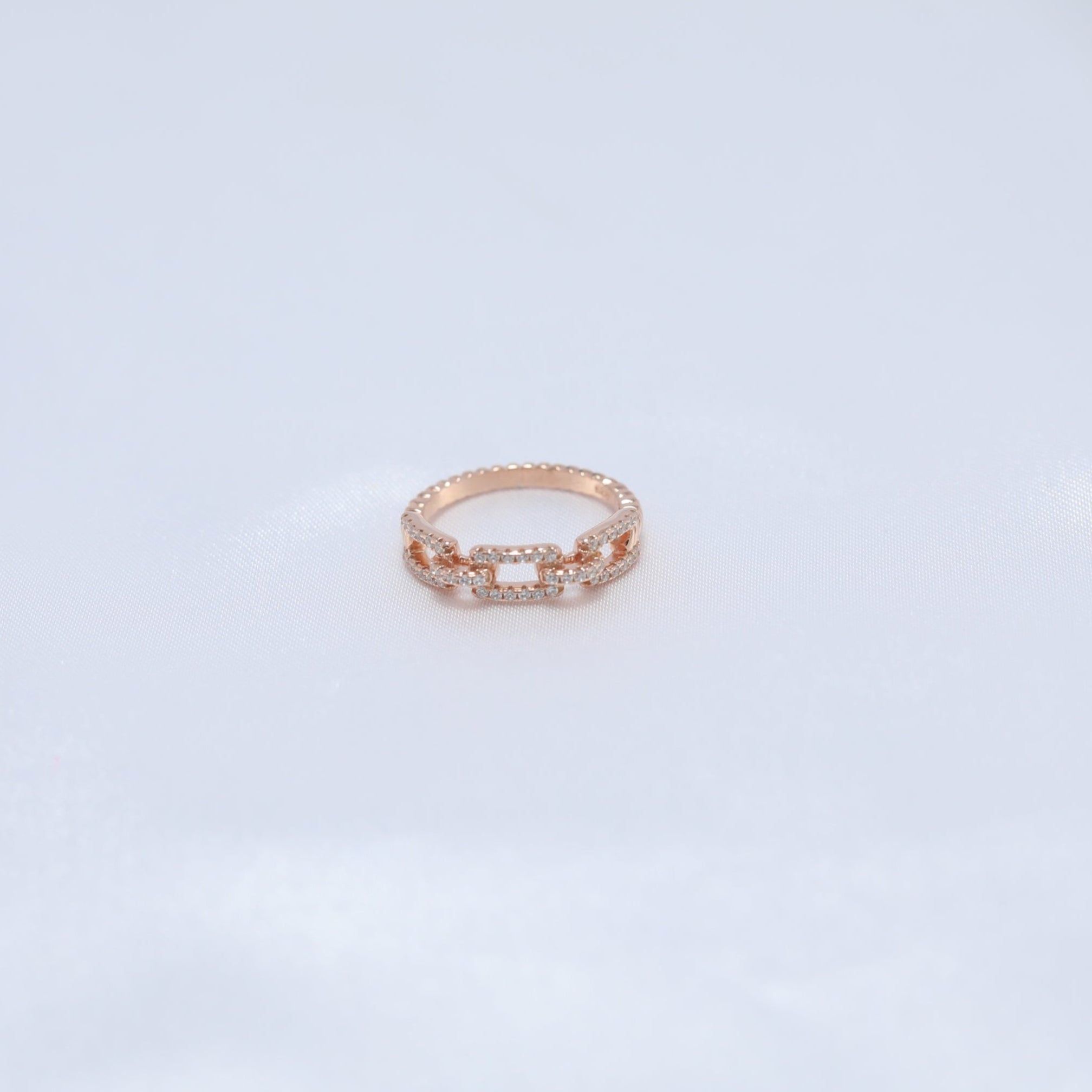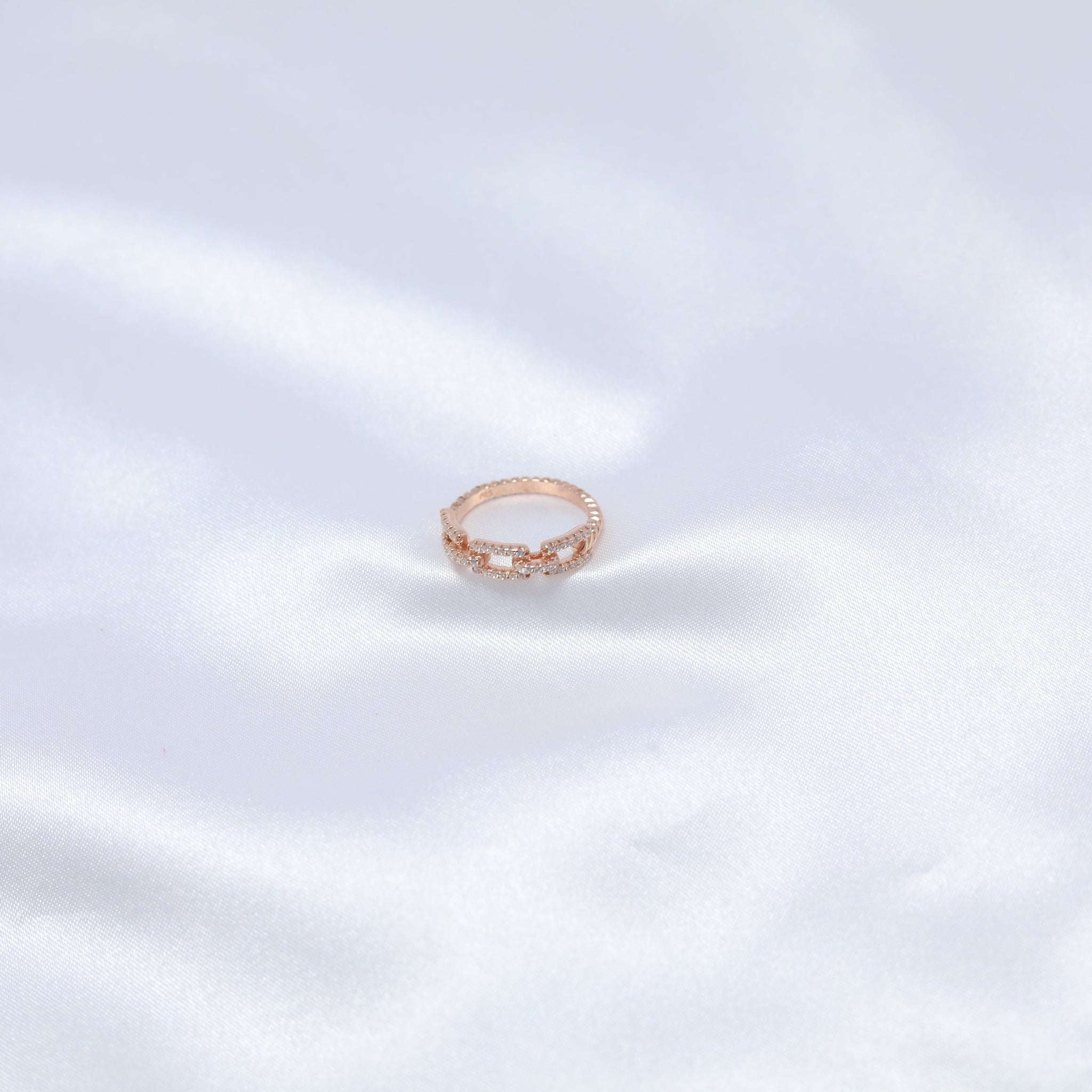 A bold statement of strength and elegance, the Zanjeer Ring captures the essence of resilience and timeless sophistication. Its unique chain-link design represents unbreakable bonds and enduring connections, while the dazzling cubic zirconia accents add a touch of sparkle to its powerful silhouette. Crafted in premium rose-gold-plated silver, this ring is a testament to grace with a modern edge, making it perfect for those who value strength and style.