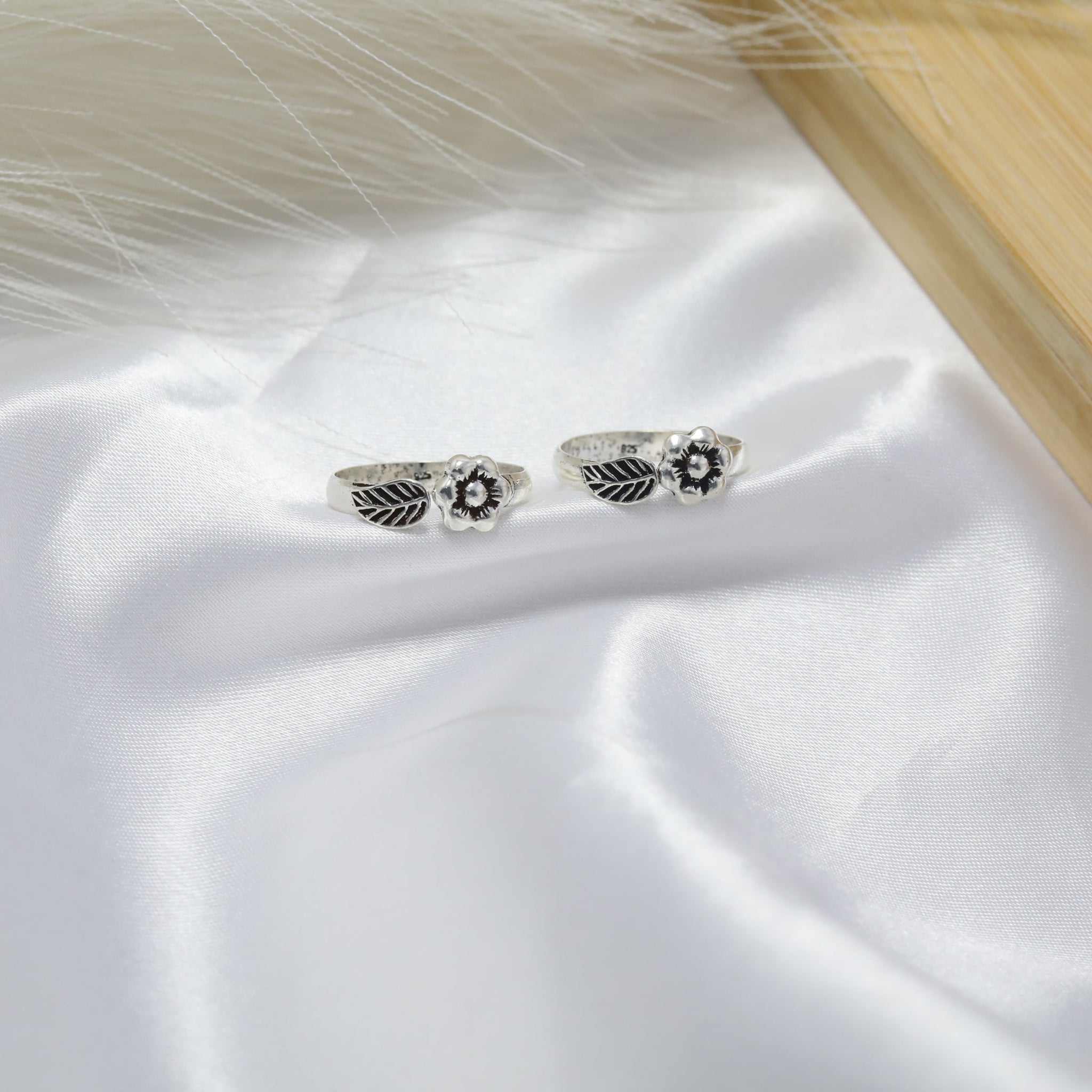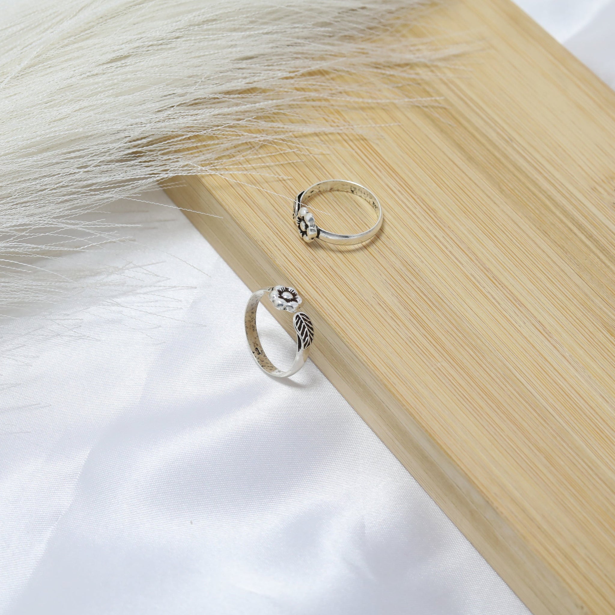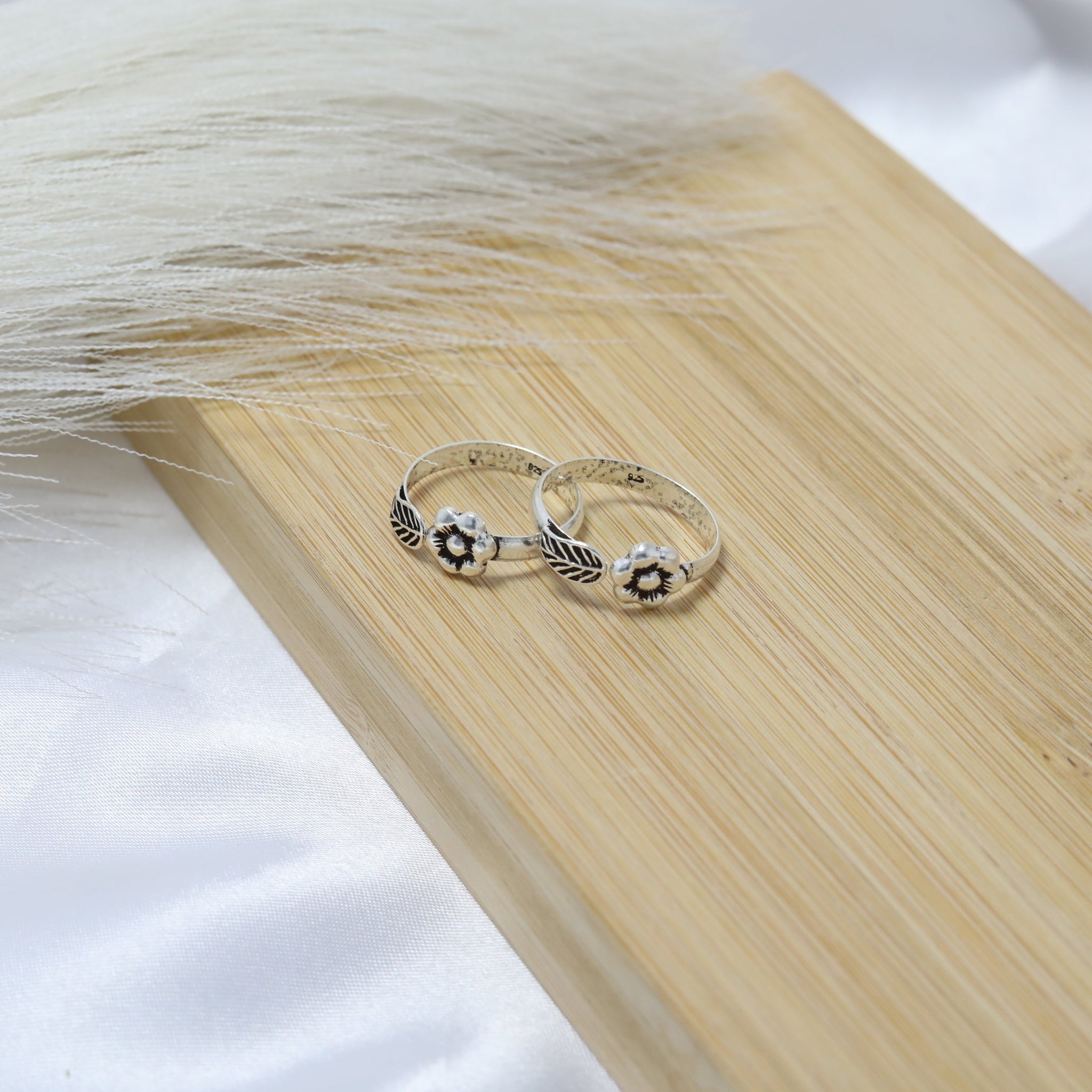 Celebrate timeless elegance with Phool Patti Toe Rings, crafted in premium silver with a delicate floral and leaf design. The intricate detailing of the blooming flower and leaf pattern symbolizes nature's grace, making these toe rings a perfect blend of tradition and style.