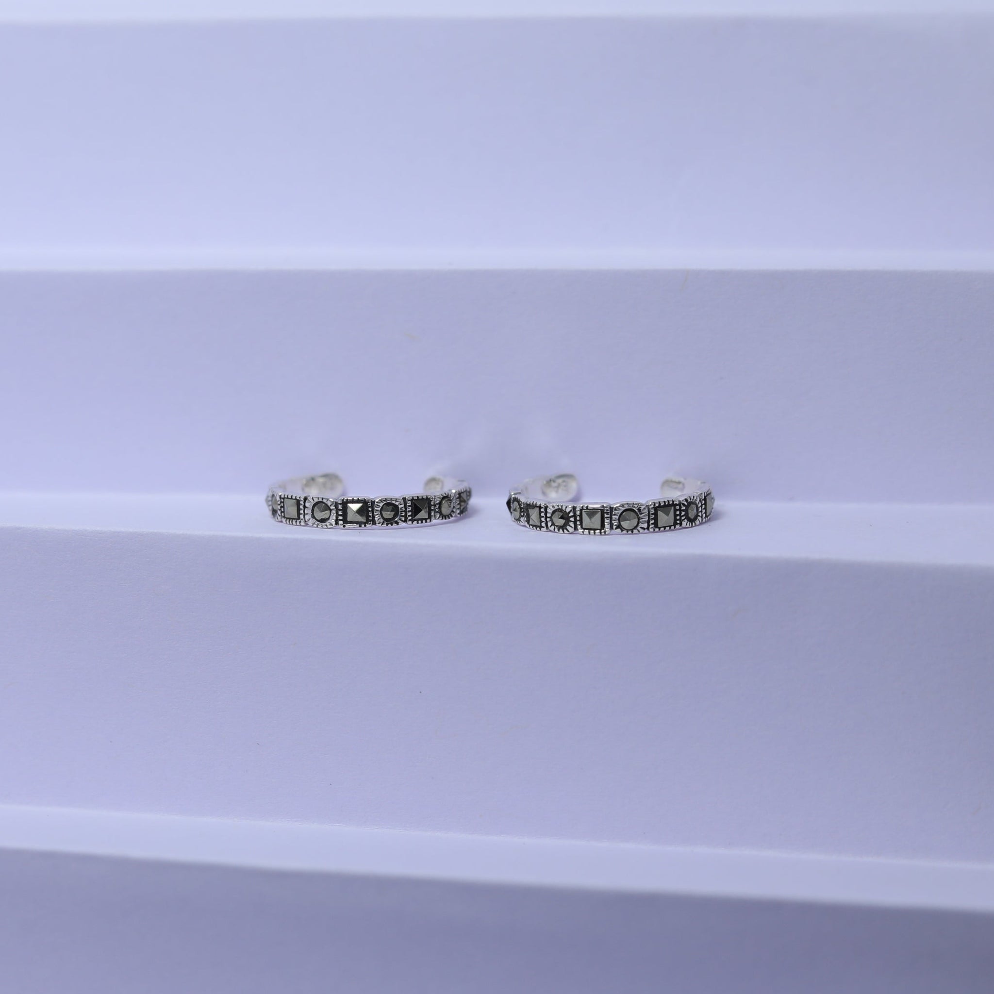 Add a touch of elegance to your feet with these Vintage Marcasite Toe Rings, designed to bring a classic and timeless charm to your jewelry collection. Crafted from sterling silver and adorned with marcasite stones, these toe rings feature intricate detailing that enhances their antique-inspired beauty.