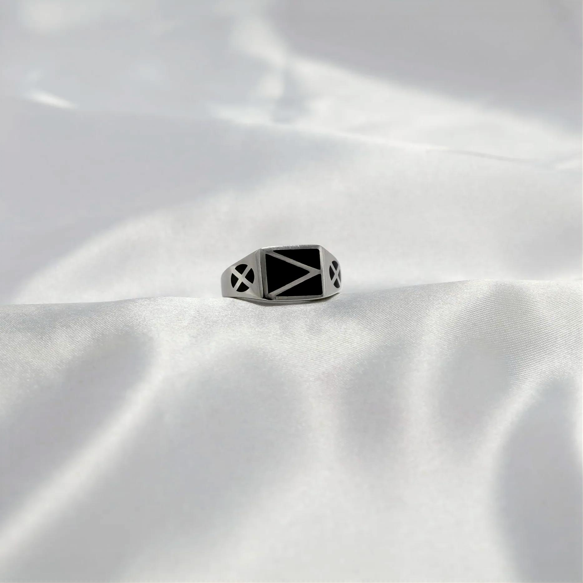 Elevate your style with the Geometric Onyx Signet Ring, a striking fusion of modern design and timeless elegance. Crafted from premium 925 sterling silver, this ring features bold geometric black onyx inlays, adding a touch of sophistication and edge to any look.