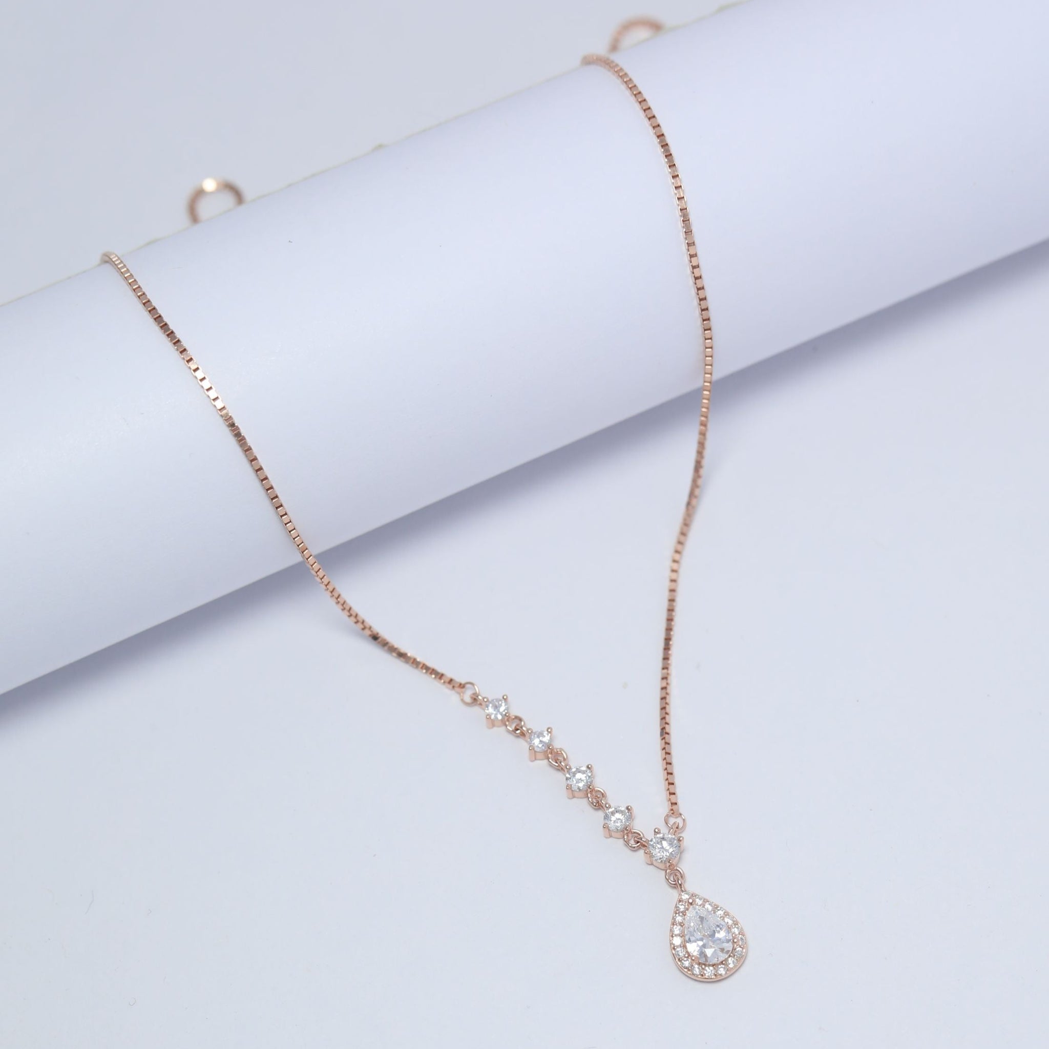 Add a touch of grace with our Elara Teardrop Necklace — a delicate blend of modern minimalism and timeless charm. Featuring a fine rose gold-plated chain, it’s adorned with a graceful row of shimmering CZ stones that lead into a stunning teardrop centerpiece.