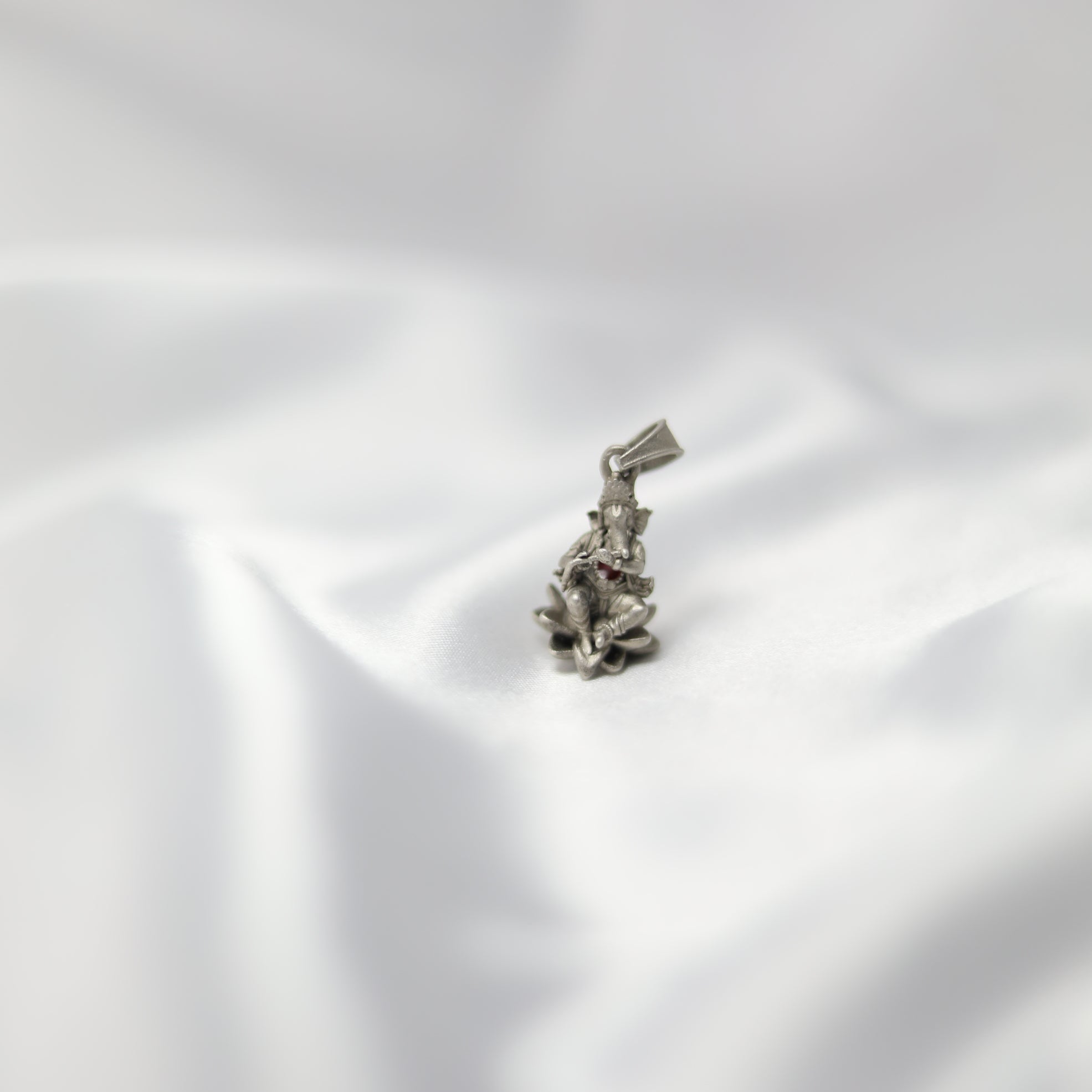 Embrace the spiritual essence of Lord Ganesha with this exquisitely crafted 925 sterling silver pendant. Designed with intricate detailing, this pendant showcases Lord Ganesha seated on a blooming lotus, symbolizing wisdom, success, and new beginnings.